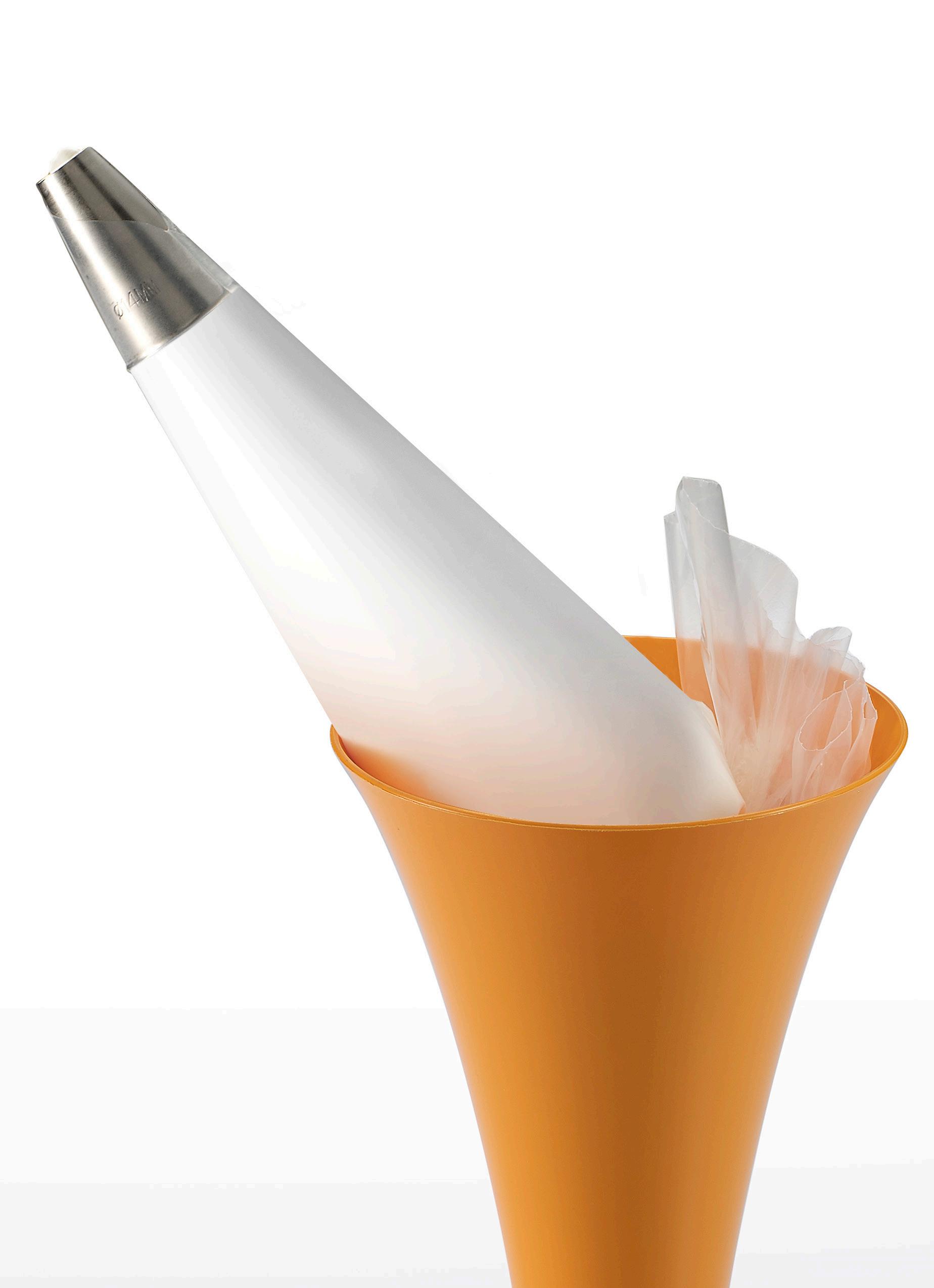 Available in two sizes, it is made of a resistant, technical material, suitable for even the thickest doughs and dishwasher safe. The non-slip exterior ensures a secure grip, while the non-stick interior ensures precise dough release, reducing waste. The grease-proof material has been designed to prevent any kind of oozing, even with particularly greasy or butter-based doughs, without retaining unpleasant odours.
