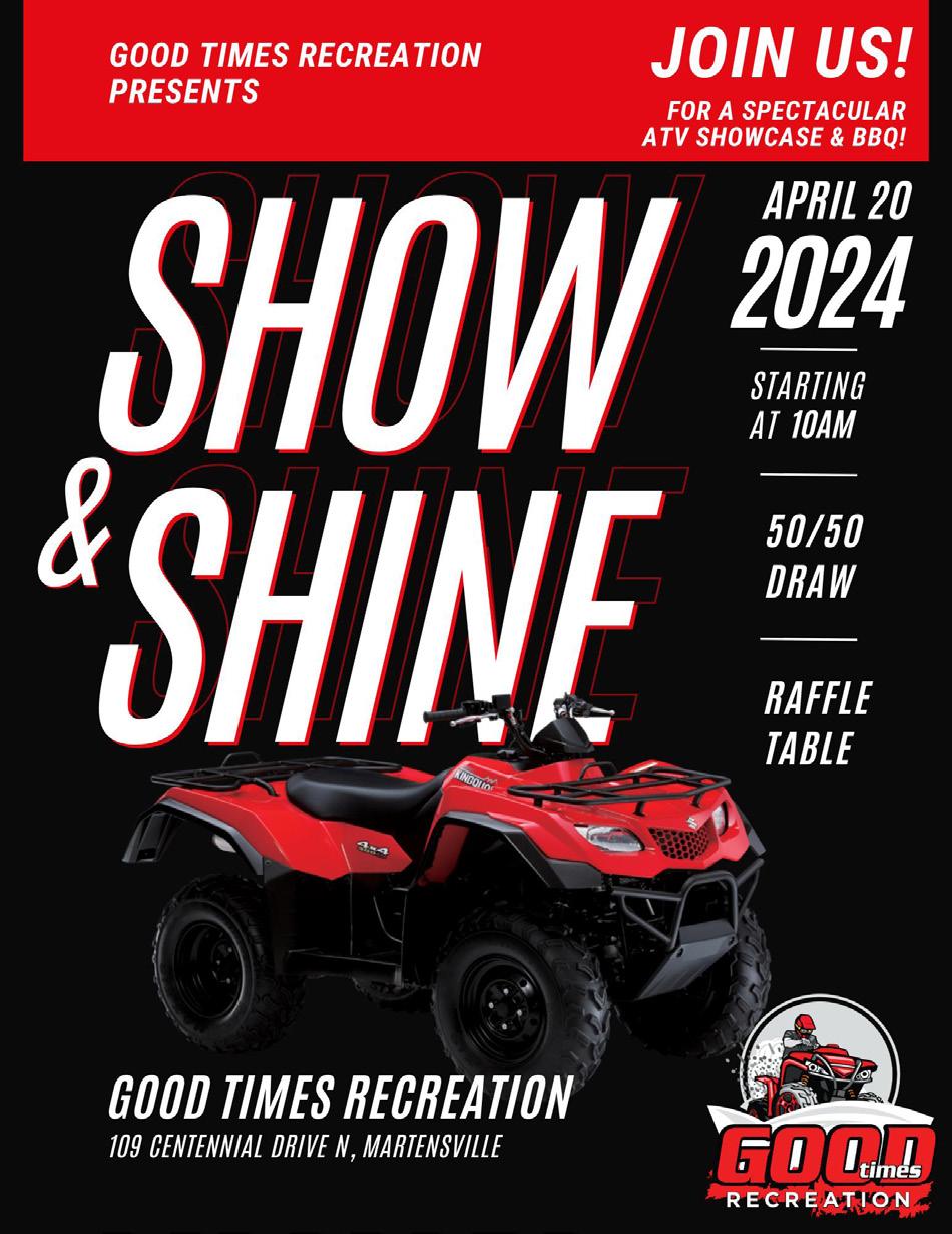 ABOVE: Be sure to stop by the Good Times Recreation Show & Shine on April 20th from 10am-4pm for a chance to see some of the biggest names in the ATV world.