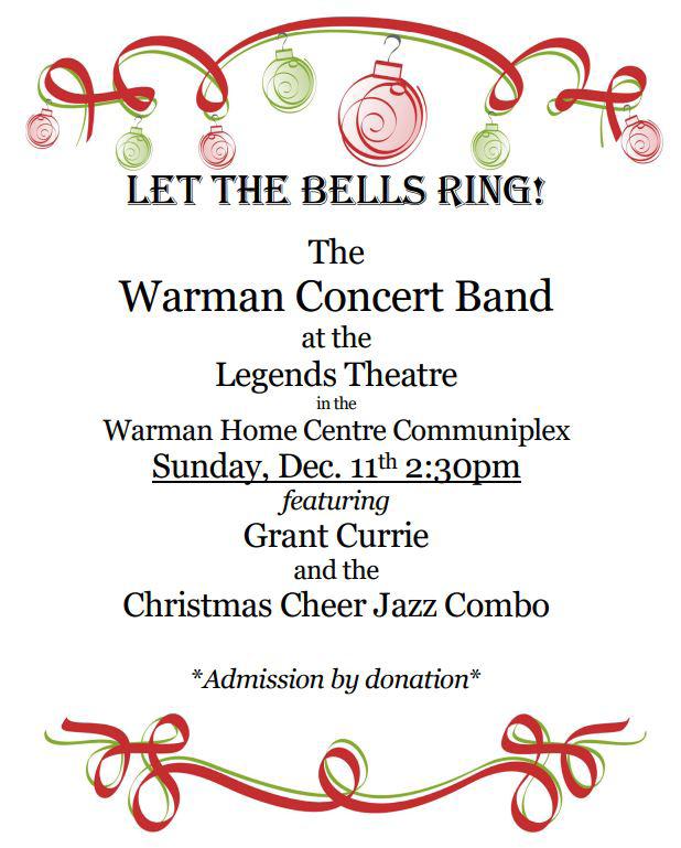 The Warman Community Band is holding their first concert since the pandemic hit and are inviting the public to attend the ‘Let the Bells Ring!’ live concert on Sunday, December 11th at 2:30pm in the Legends Theatre at the Warman Home Centre Communiplex. Admission is by donation.