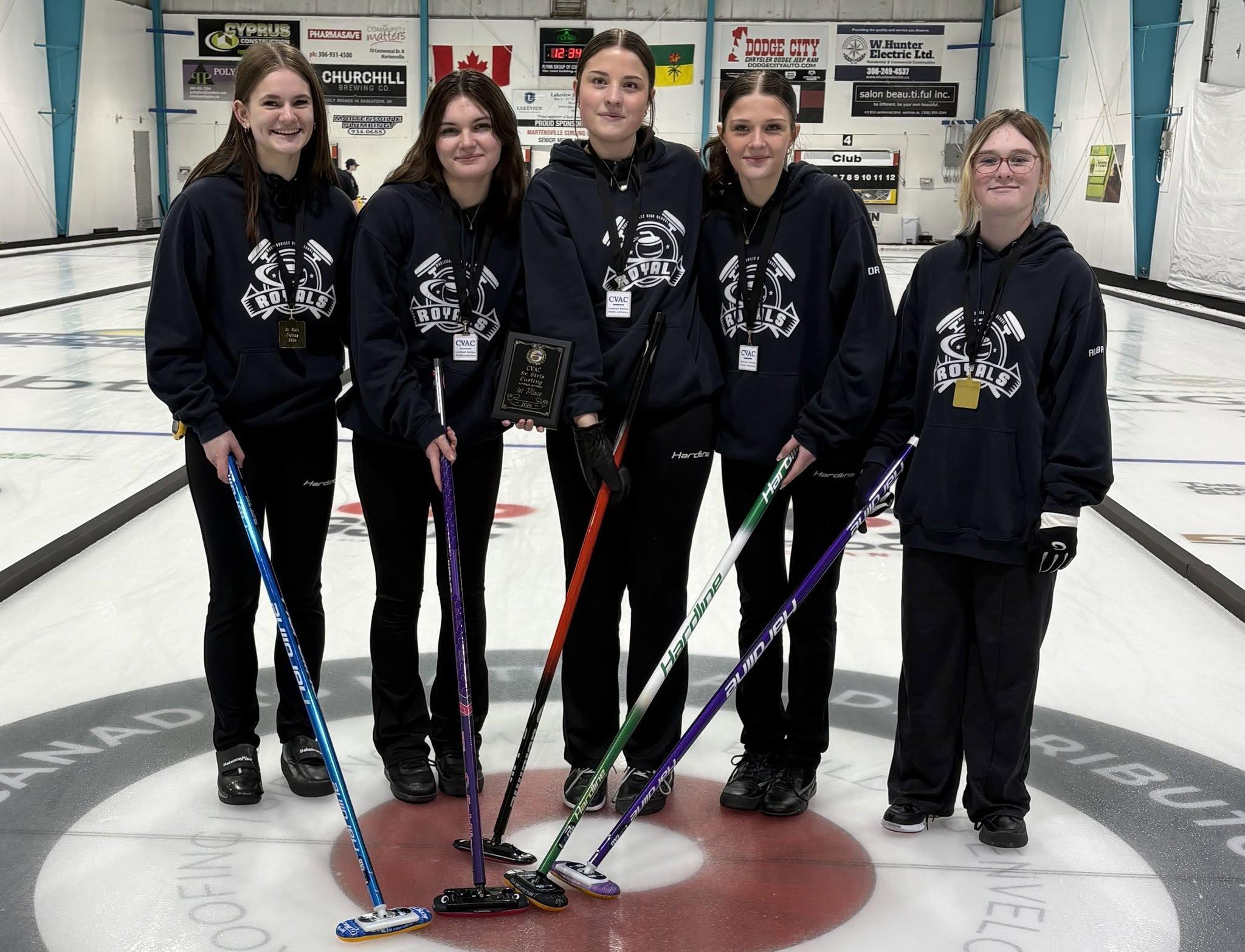 ABOVE: The Martensville High School Sr. Girls curling club won the district championship. The team consists of Lindsay Miller, Emma Hurley, Jada and Drew Tarasoff, Aubrey Nystuen. (Martensville Curling Club)