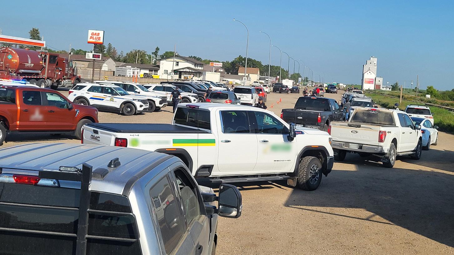 Approximately 30 police officers from Combined Traffic Services Saskatchewan units from Rosetown, Martensville, Lanigan, Melfort, North Battleford, White Butte, Saskatoon Police Service, Regina Police Service, as well as Rosetown RCMP, Saskatchewan Highway Patrol officers with the Provincial Protective Services Branch, and Saskatchewan Environment and Resource Management (SERM) assisted at the Chamberlain traffic stop.