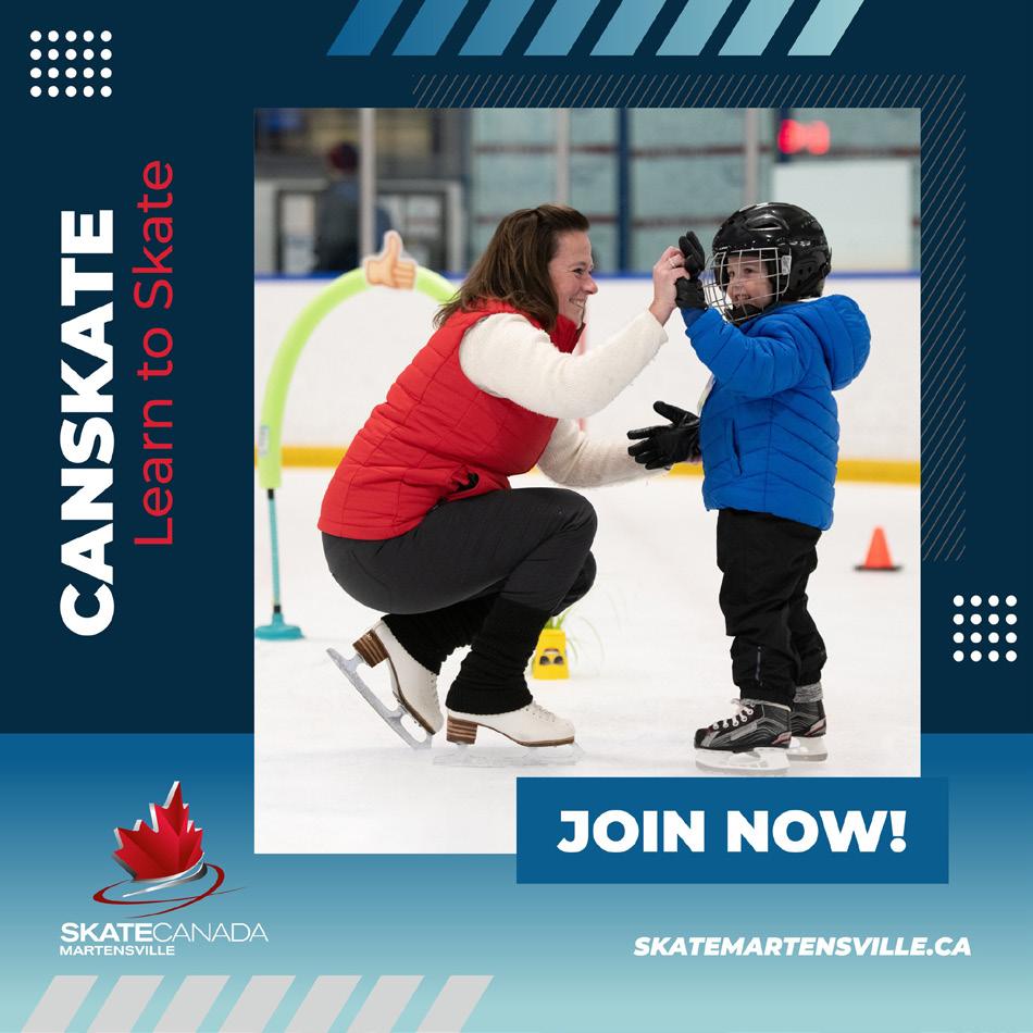 Skate Martensville is currently accepting registrations for all aspiring skaters for the 2024-2025 season. There will be two Learn to Skate programs: PreCan - (ages 3 & 4): Tuesday &/or Thursday 6:30-7:00pm CanSkate – (Learn to skate): Tuesday &/or Thursday 6:15-7:00pm The rest of the programs are as follows: PreSTAR – Tuesday & Thursday 5:15-6:15pm STARSkate – Tuesday & Thursday 4:00-6:15pm Friday 3:45 – 5pm – MARTENSVILLE SPORTS CENTRE