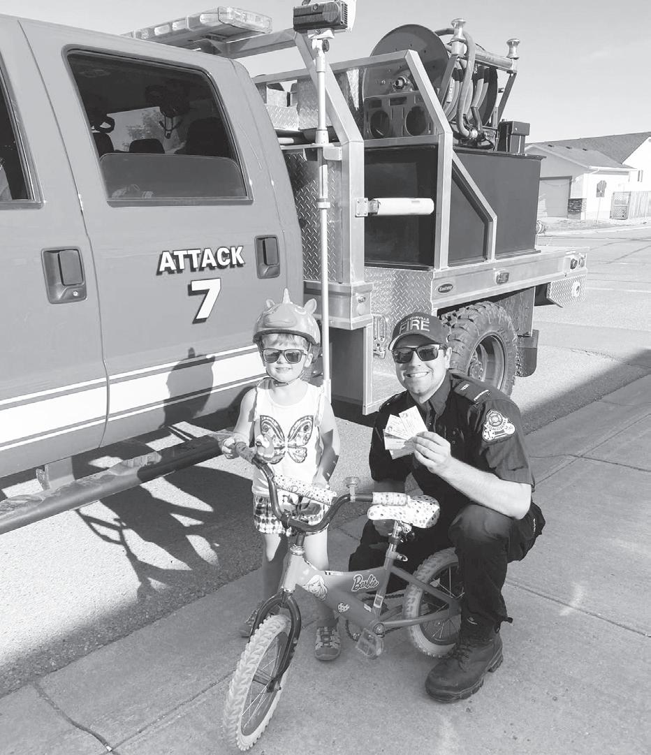 ABOVE: The Martensville Fire Department will be rewarding local youth seen wearing helmets this summer. Members will be in uniform and in MFD vehicles when handing out the “tickets”. (Martensville Fire Department)