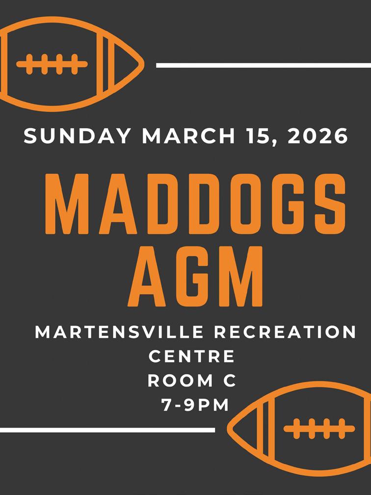 The Martensville Maddogs Football Club will hold its Annual General Meeting on Sunday, March 15th from 7:00pm to 9:00pm at the Martensville Recreation Centre.