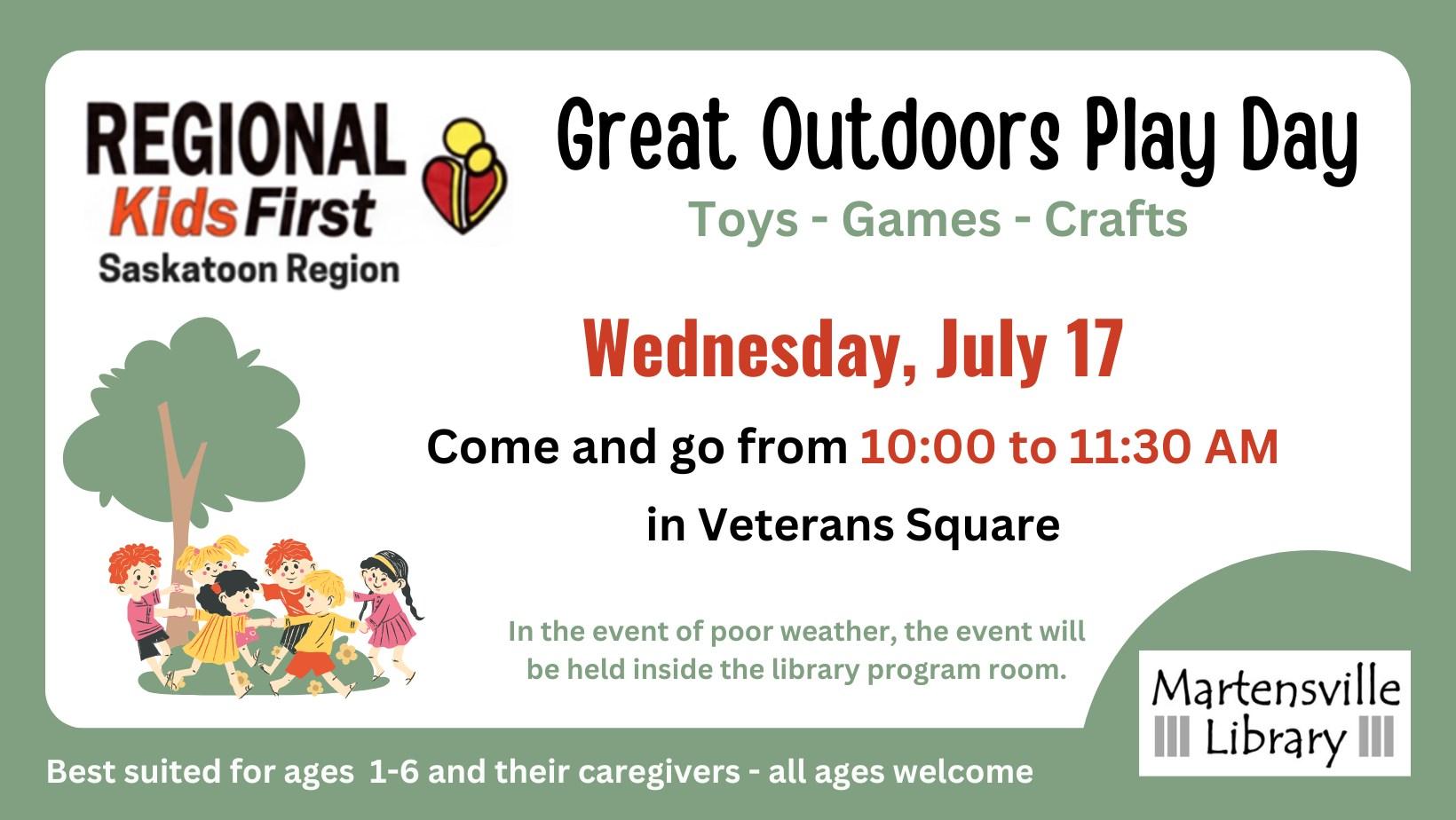 Join us on the Wheatland Storybook Trail in Veterans Square. Walk the square and read the story panels. (Veterans Square is located just out the West doors of the Martensville Civic Centre.)