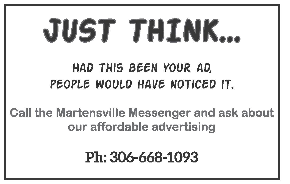 Had this been your ad, people would have noticed it. Call the Martensville Messenger and ask about our affordable advertising Ph: 306-668-1093