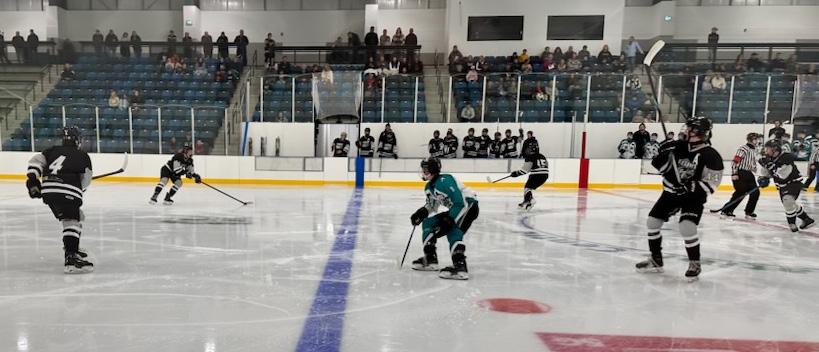 Cooper Sawatzky, the captain of the U16AA Marauders, along with alternate captains Kohen Oblander and Cruz Harrison joined with Lennon Fetterly, the captain of the Prince Albert Renegades for the ceremonial puck drop.