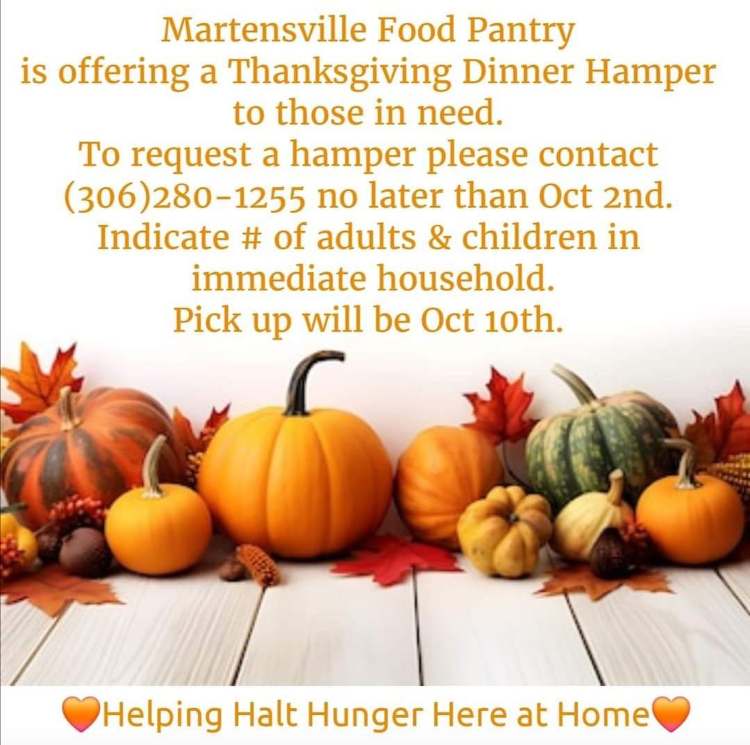 Volunteers from the Martensville Food Pantry will be busy once again preparing hampers for the Thanksgiving holiday to those in need.