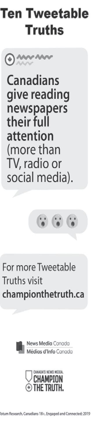 Advertisements and statements contained herein are the sole responsibility of the persons or entities that post the advertisement, and the Saskatchewan Weekly Newspaper Association and membership do not make any warranty as to the accuracy, completeness, truthfulness, or reliability of such advertisements. For greater information on advertising conditions, please consult the Association’s Blanket Advertising Conditions on our website at www.swna.com.