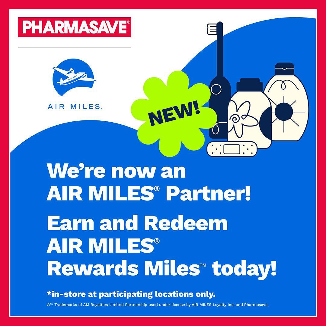 Pharmasave Air Miles members can earn one Mile with every $10 spent on eligible purchases in-store.