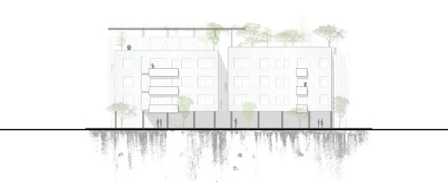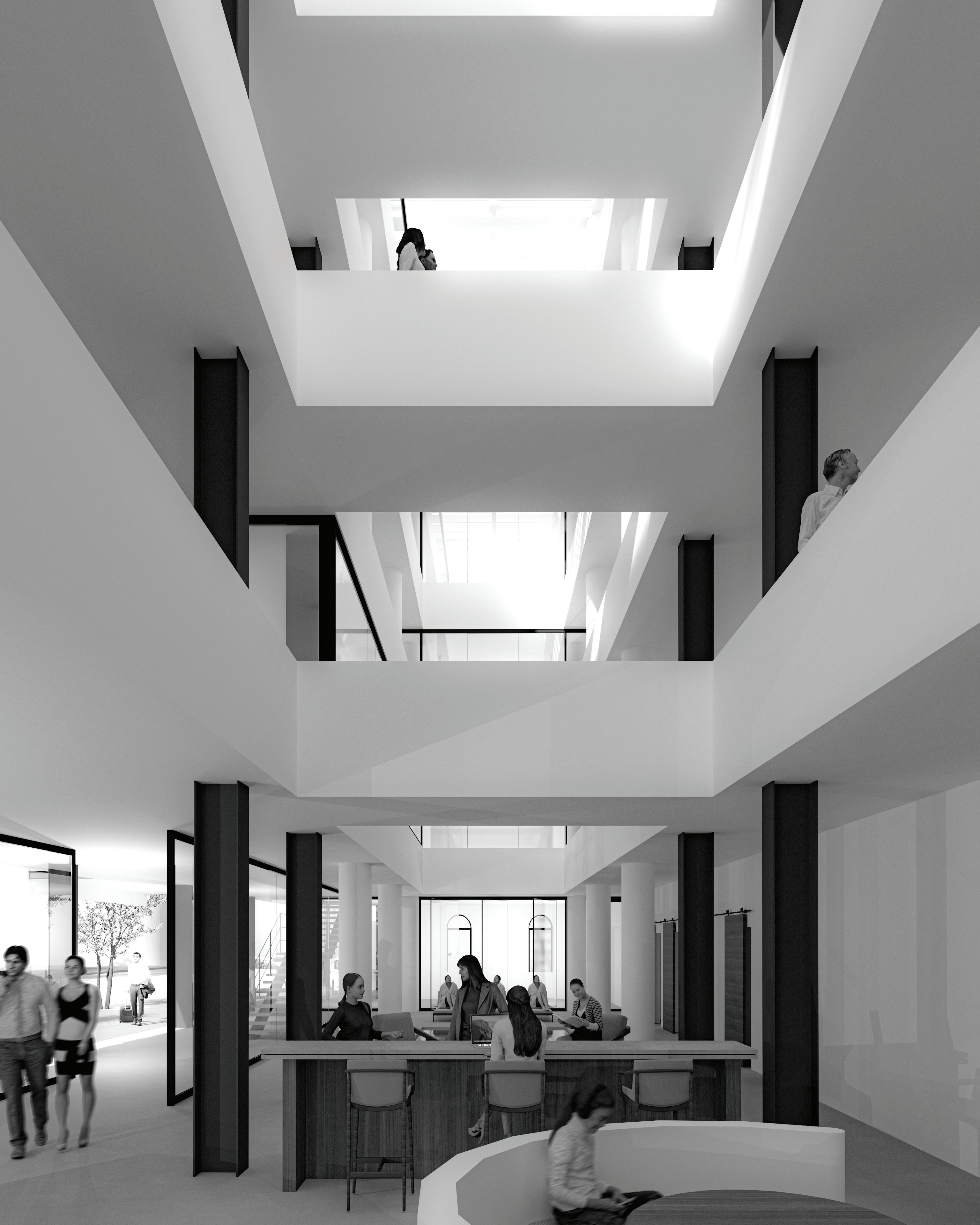 The existing structure is respected, reinforcing the columns and using them to create axes that allow the opening of interior courtyards that provide lighting and ventilation