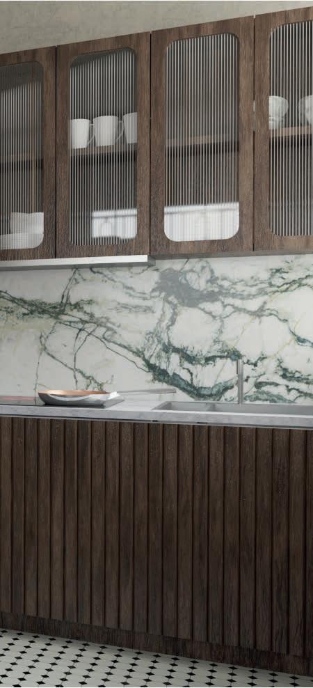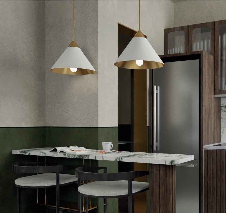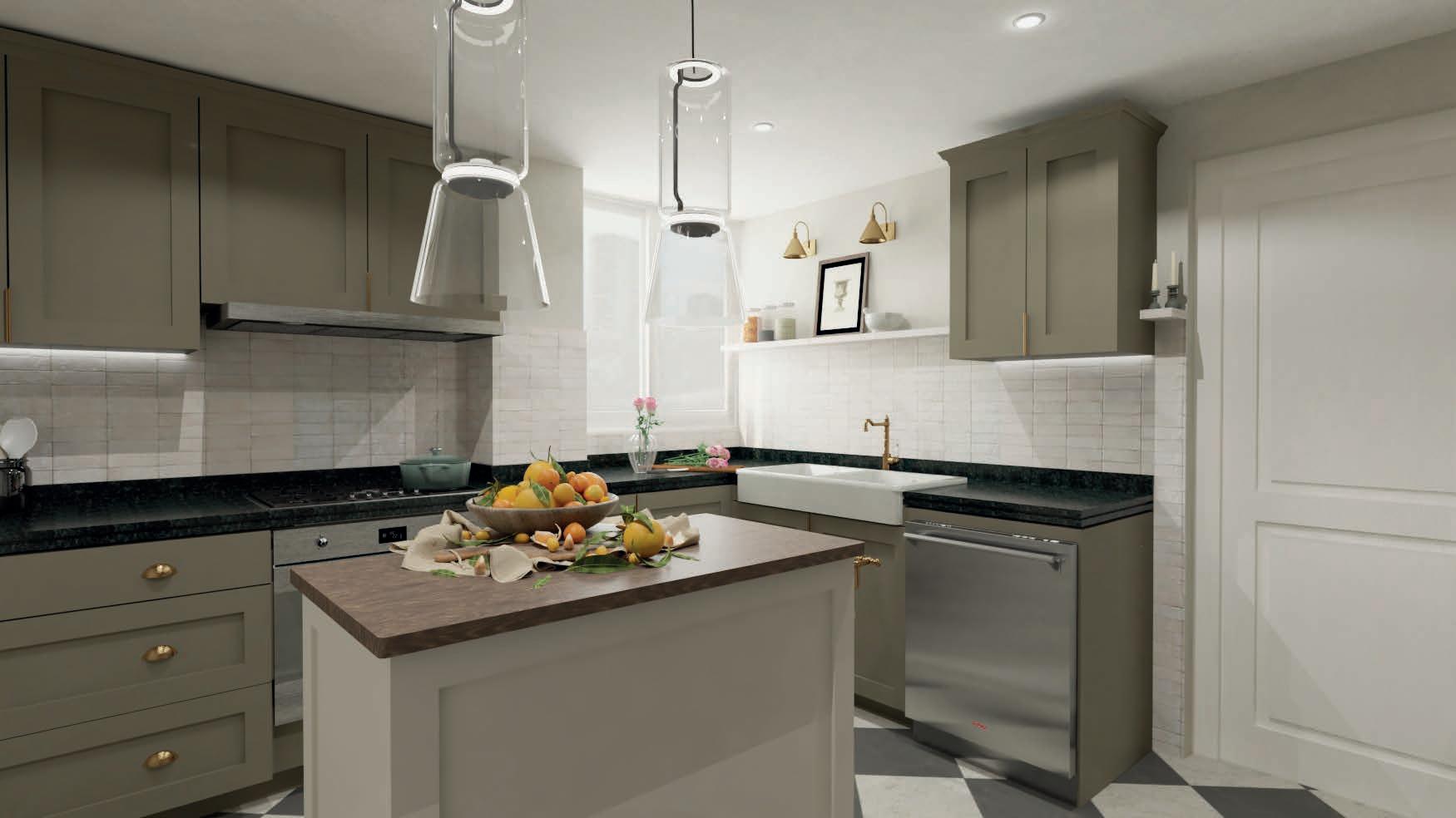 For the kitchen, we incorporated a very classic style with modern elements that provide lighting and spaciousness to the space. The light tones with the influence of green and its brass details generate an unexpected harmony and are ideal for the area to be used at any time of the day.
