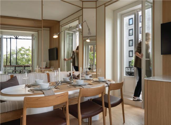 This 128 m² apartment, located on Alcalá Street in Madrid, was designed with a focus on maximizing every space, transforming each area into a cohesive piece of functional furniture. Elements such as hidden beds, foldable desks, and multifunctional headboards were incorporated to optimize every square meter, allowing the space to adapt to various needs without compromising the quality of the design. These solutions not only enhance the apartment’s versatility but also make it possible to accommodate a larger number of guests comfortably.
