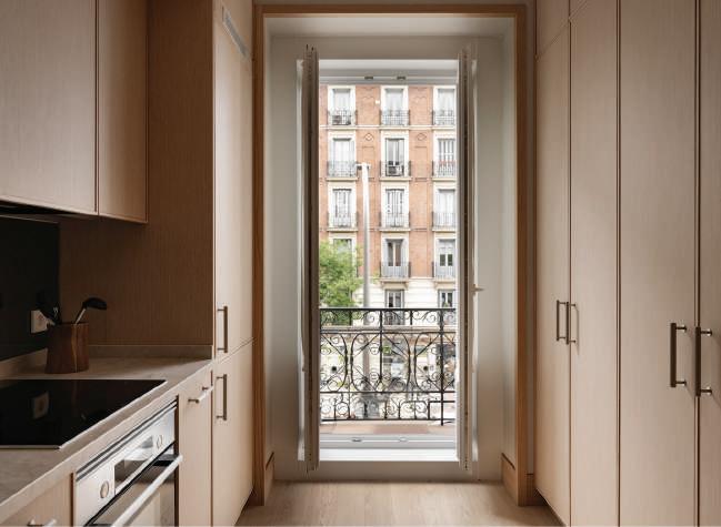The project places a strong emphasis on openness and integration with the vibrant life of Madrid. Large windows, balconies, and transparent partitions were strategically introduced to create a seamless connection between the interior spaces and the dynamic urban landscape outside. Natural light floods the apartment throughout the day, enhancing the perception of space and imbuing the interiors with a sense of warmth and vitality.