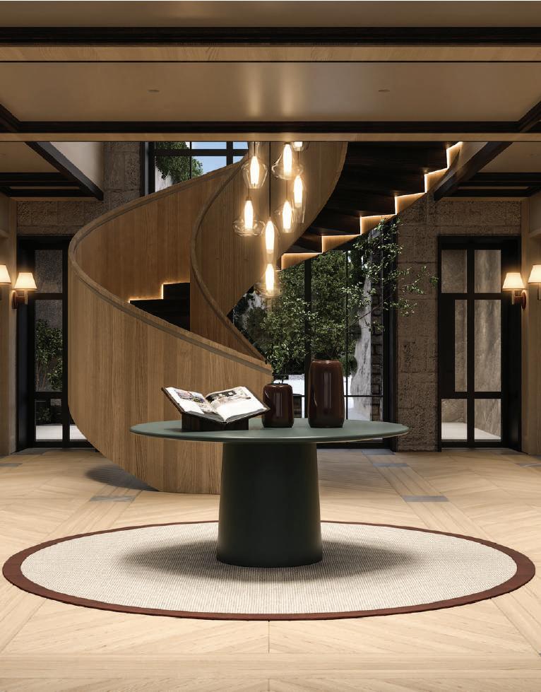 The residential project Privada presents an elegant and sophisticated balance by employing a palette of neutral-toned materials as the foundation for the furnishings. A rich variety of textures and materials creates a warm and visually engaging atmosphere, where each element complements the others harmoniously.