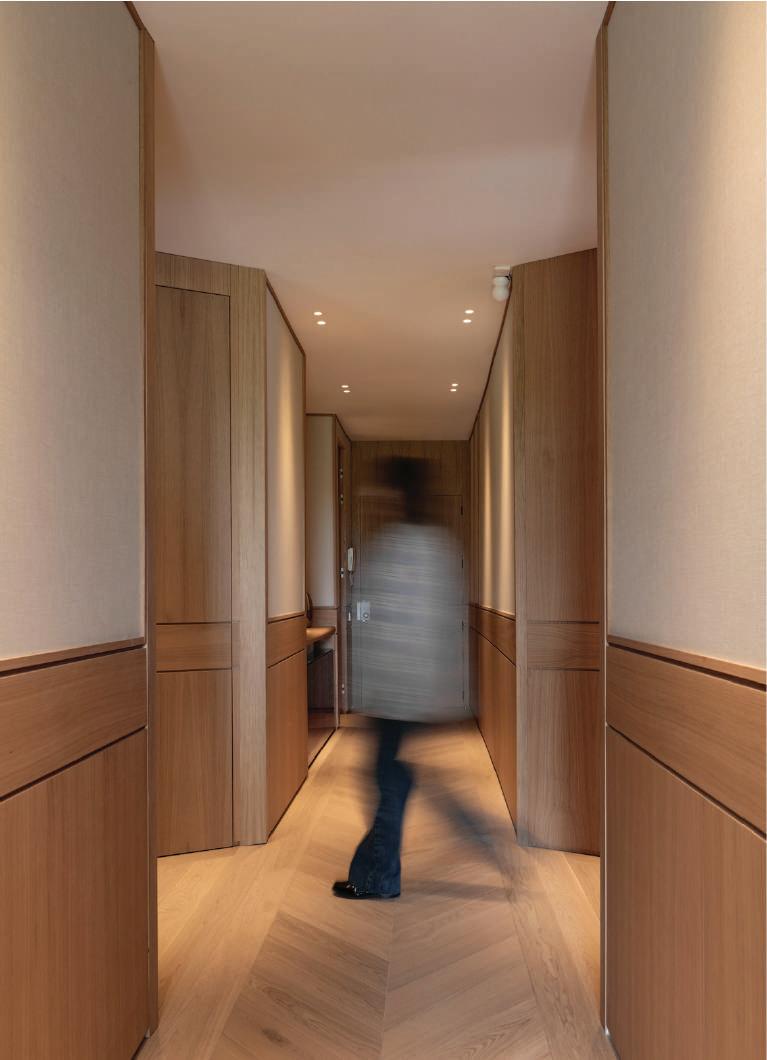 By embracing light as a fundamental design tool, the apartment achieves an extraordinary sense of amplitude and fluidity. Spaces that might have felt constrained are instead airy and inviting, offering a contemporary urban living experience that is deeply connected to the rhythm and energy of the city.
