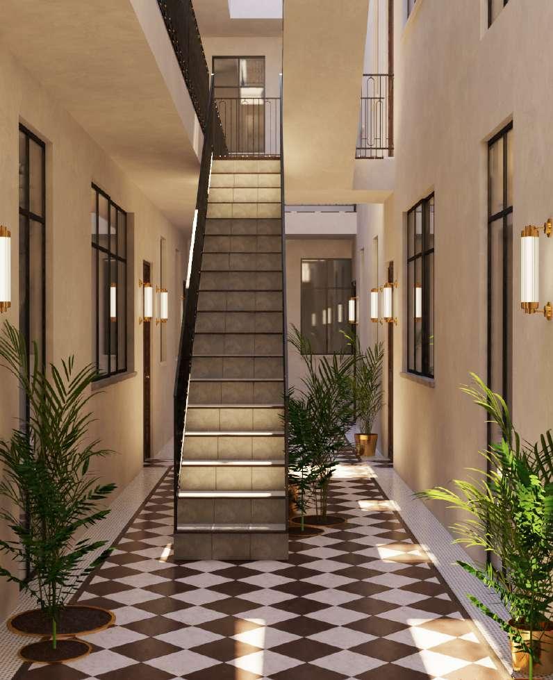 The central garden was a high priority since it is the largest source of light for each dwelling. For this, a dome was generated on the third level of the building, which protects against natural events as well as providing the cross ventilation needed to maintain the appropriate temperature for the project. This is the place where each apartment concept becomes one.
