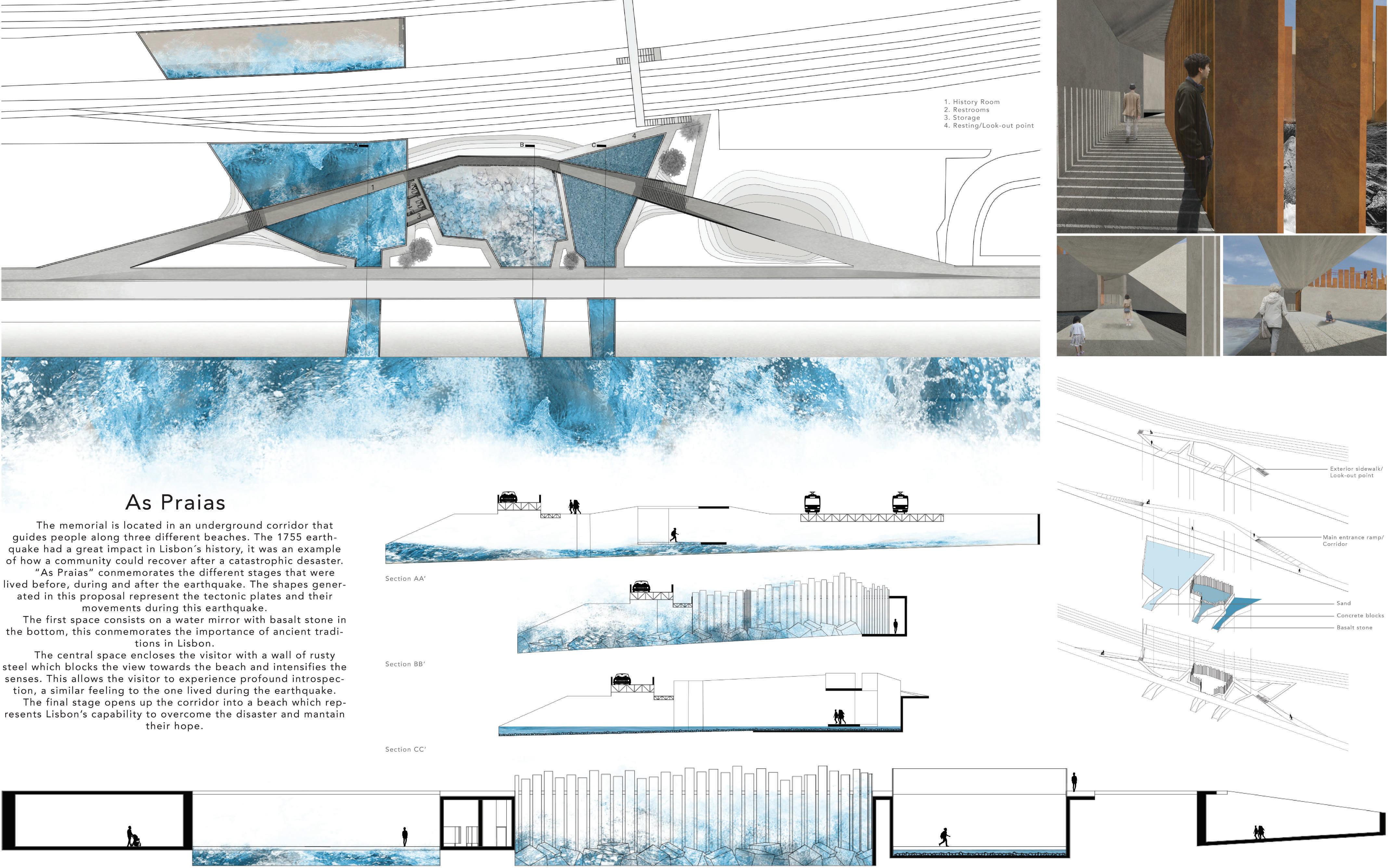 The final stage opens up to a corridor that connects to the beach, representing the ability of the inhabitants of Lisbon to overcome the disaster and maintain hope.