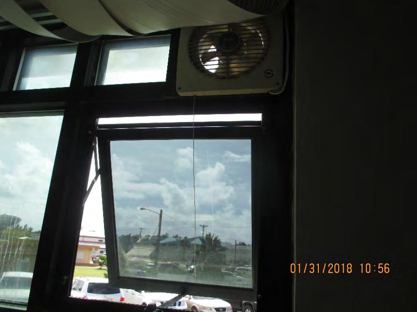 Since the facility was first built and occupied in 1997, there has been no significant changes recorded to the air conditioning system except for the “addition” of an ARRA funded 200 TON Smardt Chiller in 2008-2009 that included a new air-cooled condenser and chilled water pump. According to the building staff the building has been experiencing elevated relative humidity and mold issue over the past 10 years. Over the years there have been several changes of Building Superintendents supervising the facility. With the change of personnel, there appears to be a poor turnover of record keeping of the building’s maintenance records. Presently there are no available maintenance records or OperatingMaintenance manuals for the existing equipment. The current Building Superintendent stated there is no current preventative maintenance program in place for the air conditioning and ventilation system due to funding issues and the repairs and maintenance are on an on-call basis as required. On the kick-off meeting, it has been discussed the event of major water damage from a pipe bursting where the lower floor was flooded with kneedeep water in early 2000, but the remediation and repairs to the building appear undocumented. There has also been water infiltration damage from the Soudelor Typhoon. There is a contract in place to re-seal the windows which are continuing to leak wind-driven rain into the building. There is also an on-going contract to replace all carpet in the facility with laminate vinyl floor tiles.