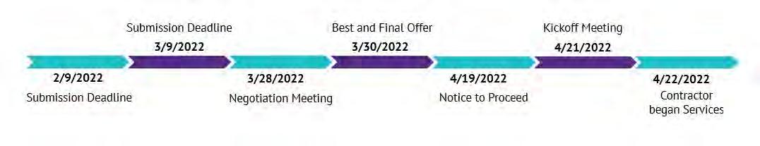 The contractor submitted their proposal on September 20,2022.Asa result,task order no.JUD-2022-TAO-001 wastransmitted to GUMAon September 22,2022,and fullyexecuted on September 26,2022.On September 23,2022, a kickoff meeting washeld to discussGUMA's proposal.Astatusmeeting isscheduled for October 14,2022.