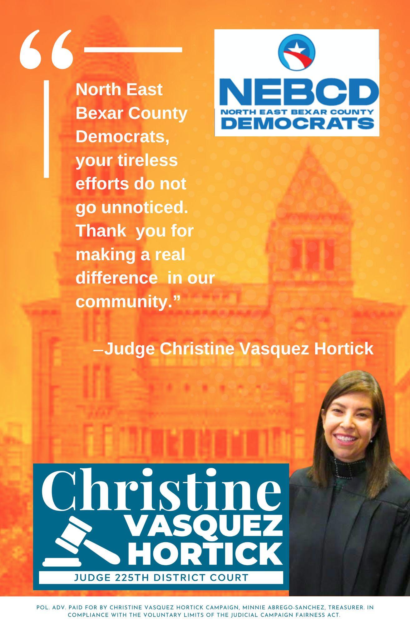 Pol.Ad.paidforby:NorthEastBexarCountyDemocrats,P.O.Box700766SanAntonio,TX78270-0766MelissaWilliams,Treasurer. info@NEBCD.org