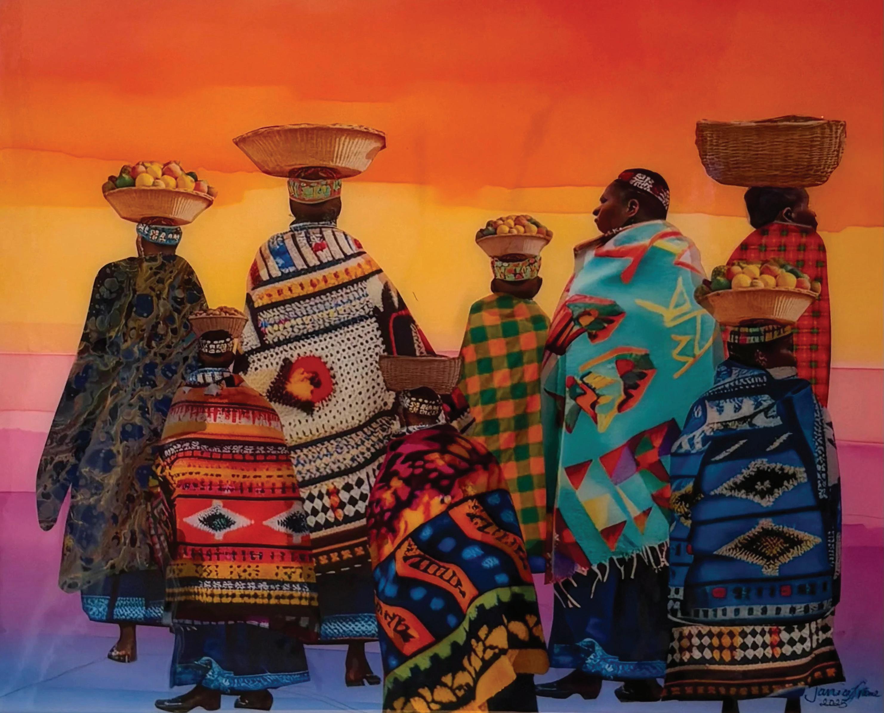 The gorgeous mixed-media artwork of Vineyard resident Janice Frame captures the rich tapestry of African cultures, ethnicities, histories, and traditions.