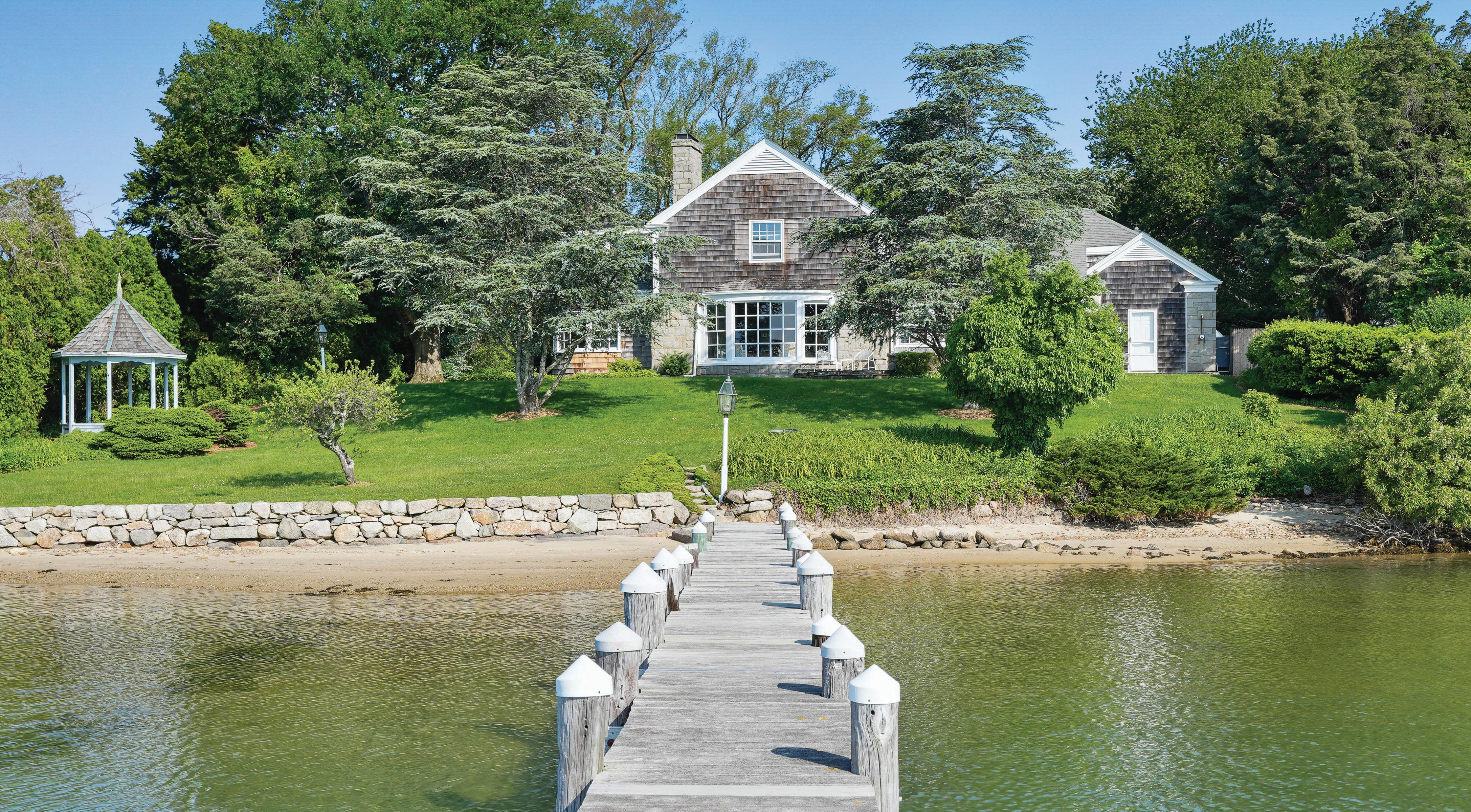 Lily Hill, a rare Hines Point offering with expansive views, a deep water mooring and dock, and 130 feet of private finesand beach. Enjoy a swim, tie your sailboat to one of the longest docks on the Lagoon, which opens to Vineyard Haven harbor, or use the deep-water mooring able to accommodate a yacht. From the great room, enjoy the sweeping views of the sunrise across the Lagoon through the elegant, curved windows. The yard is made for romantic moments with a charming gazebo that overlooks the water, and a classic pergola set beneath the sweeping branches of the large maple tree. This classic Vineyard shingle-and-stone home is just over a mile from Tisbury town center and ferry, yet invisible from the road. Lily Hill is a property that, like a work of art, must be seen and experienced to be fully appreciated. Exclusively offered at $7,295,000.