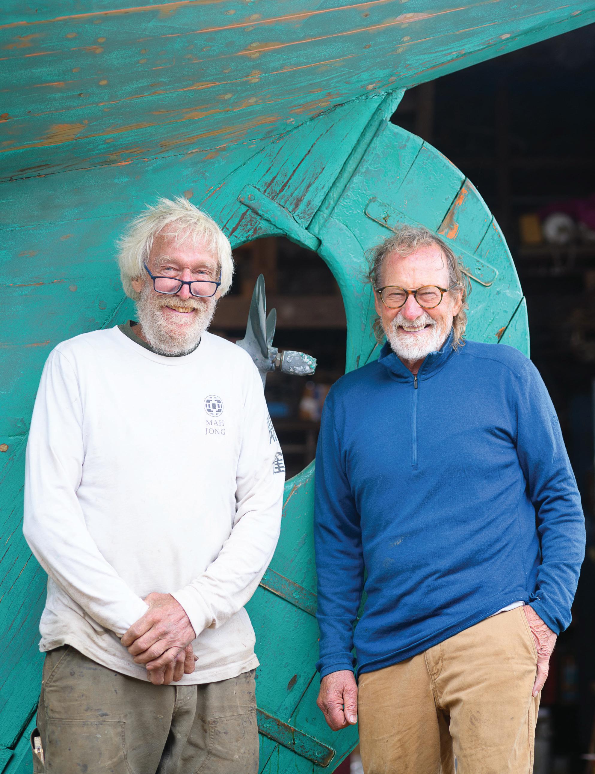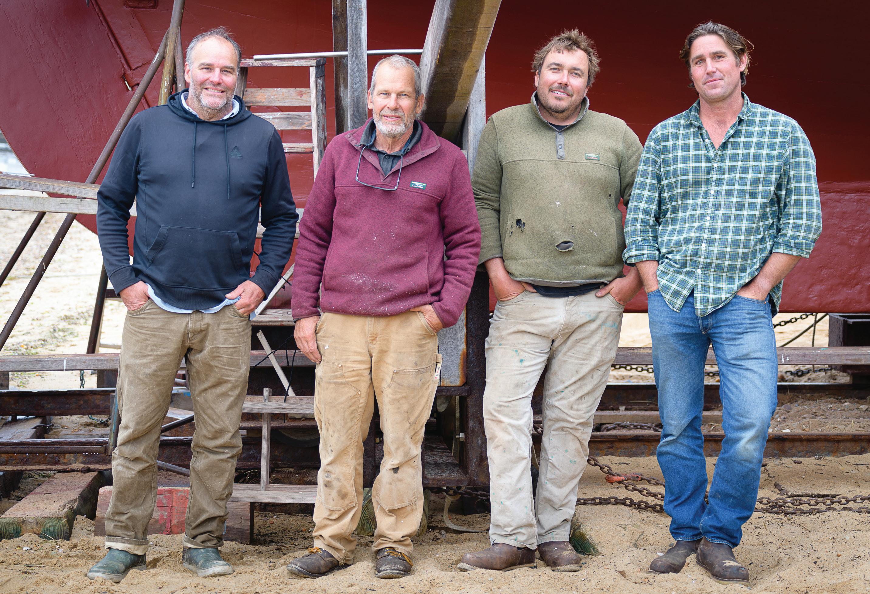 On a warm June day, I’m sitting on a weathered wooden bench in front of the Gannon & Benjamin Marine Railway with Ross Gannon and Nat Benjamin, the founders of this world-renowned boatbuilding community, along with their longtime partner, Brad Abbott. The harbor is right here, lapping the shoreline about 20 feet away.