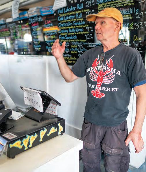 2 4 C atching up Net-working with Stanley Larsen at Menemsha Fish Market.