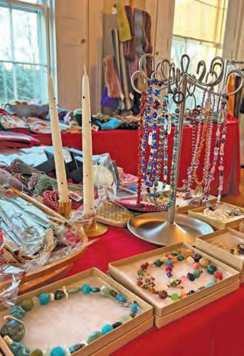 Walking into what feels like Santa’s workshop is sure to delight. Hundreds of beautiful and affordable handmade creations fill the rows of tables, and paintings and photographs adorn the walls. You will discover a wide range of alluring crafts, jewelry, knitwear, holiday cards, calendars, mobiles, glassware, clothing, purses, accessories, soaps, and even dog treats. Particularly popular are ornaments. Executive director Ann Smith adds, “We also have a lot of ceramic artists. Their works