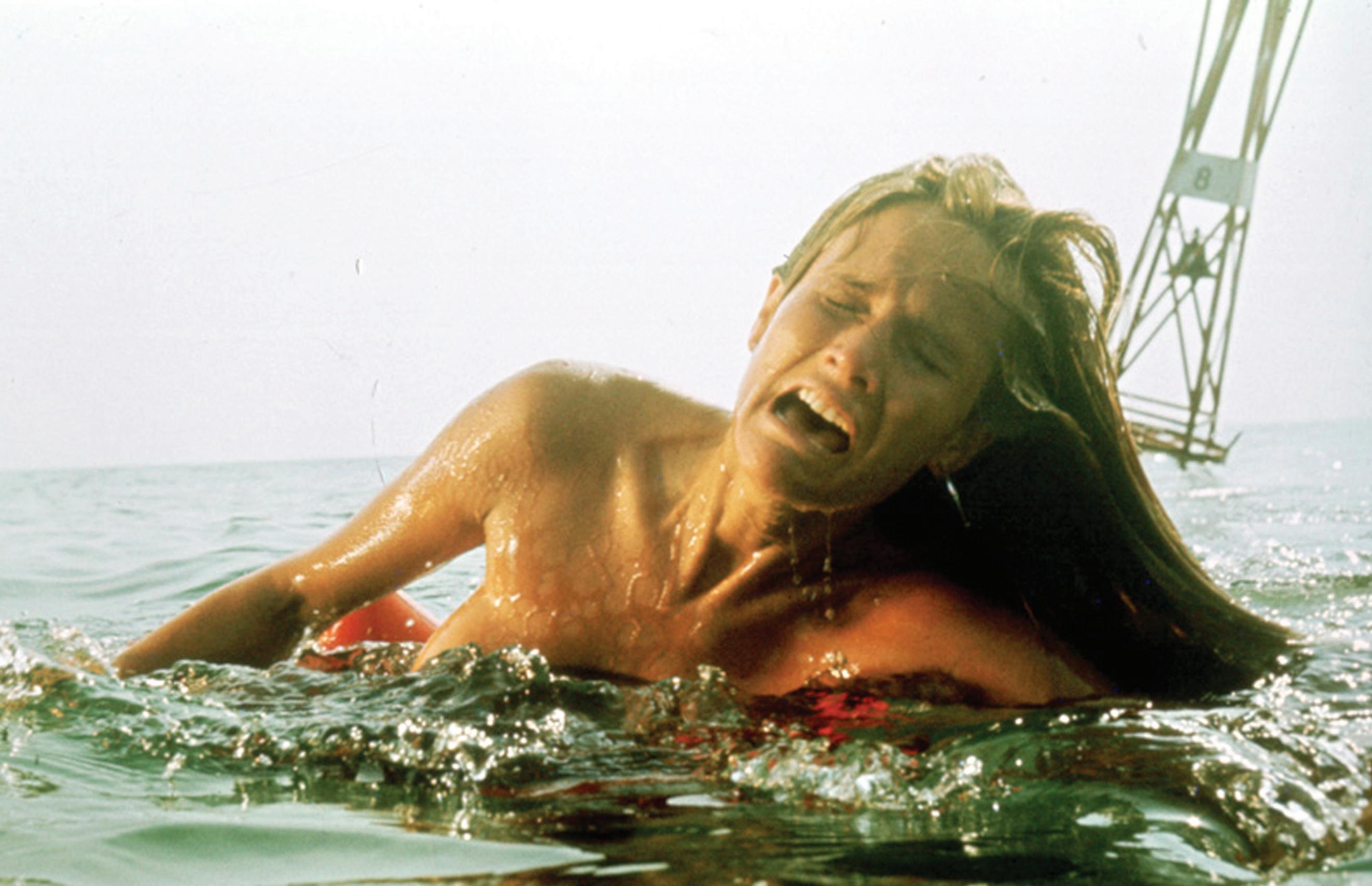 Against a backdrop of a local, year-round population of Islanders serving eager tourists, the stage is set for the tensions, on an Island where a 25-foot great white shark is lurking just off the beaches. An ominous soundtrack instills a sense of dread and fear as the shark approaches. Those two repeated, accelerating notes – dun, dun – are still, decades later, the iconic sound cue for impending, frenzied danger.