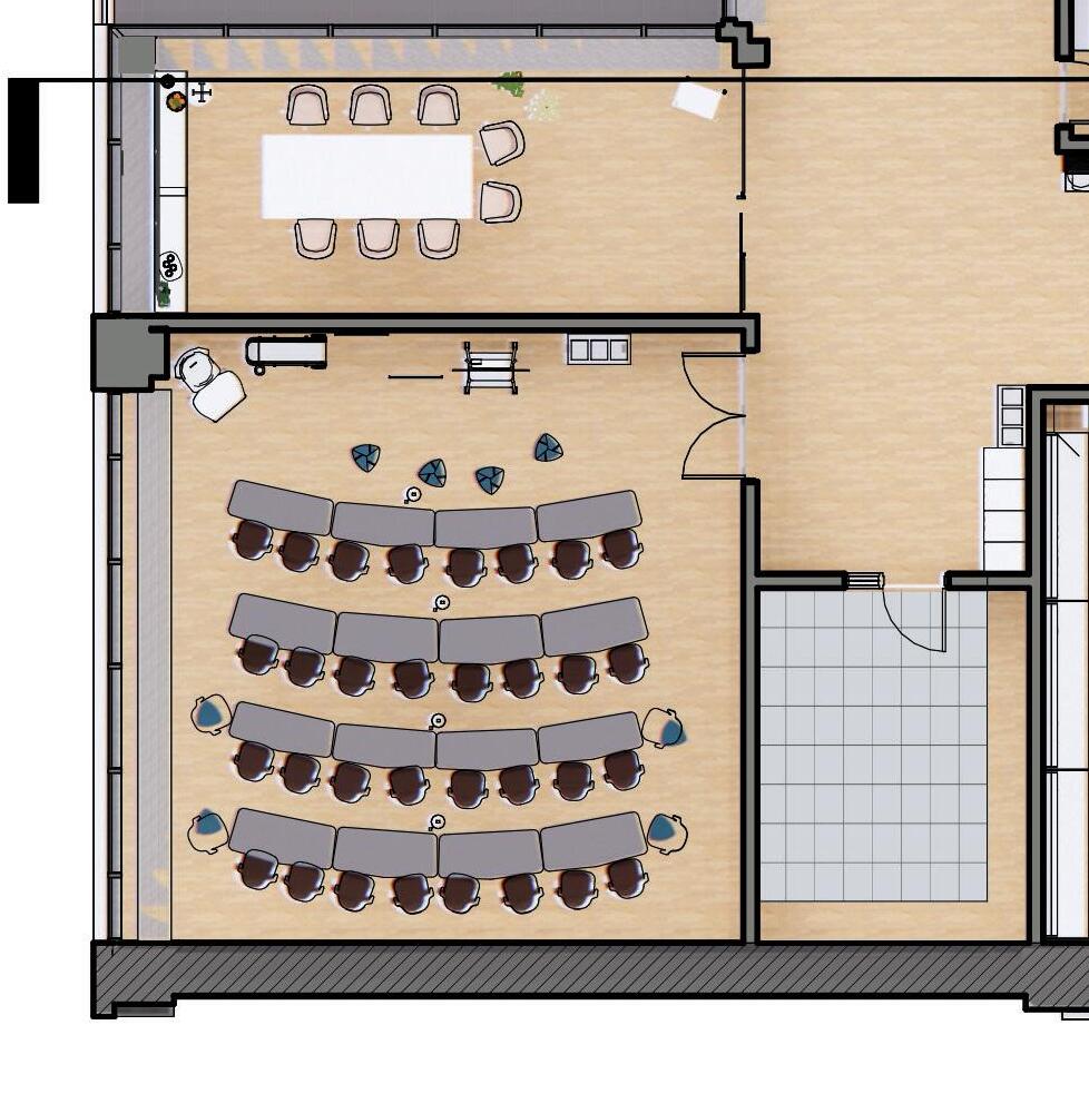 Support teams working remotely and side-by-side. Pay attention to cameras, acoustics, technology, space + lighting.