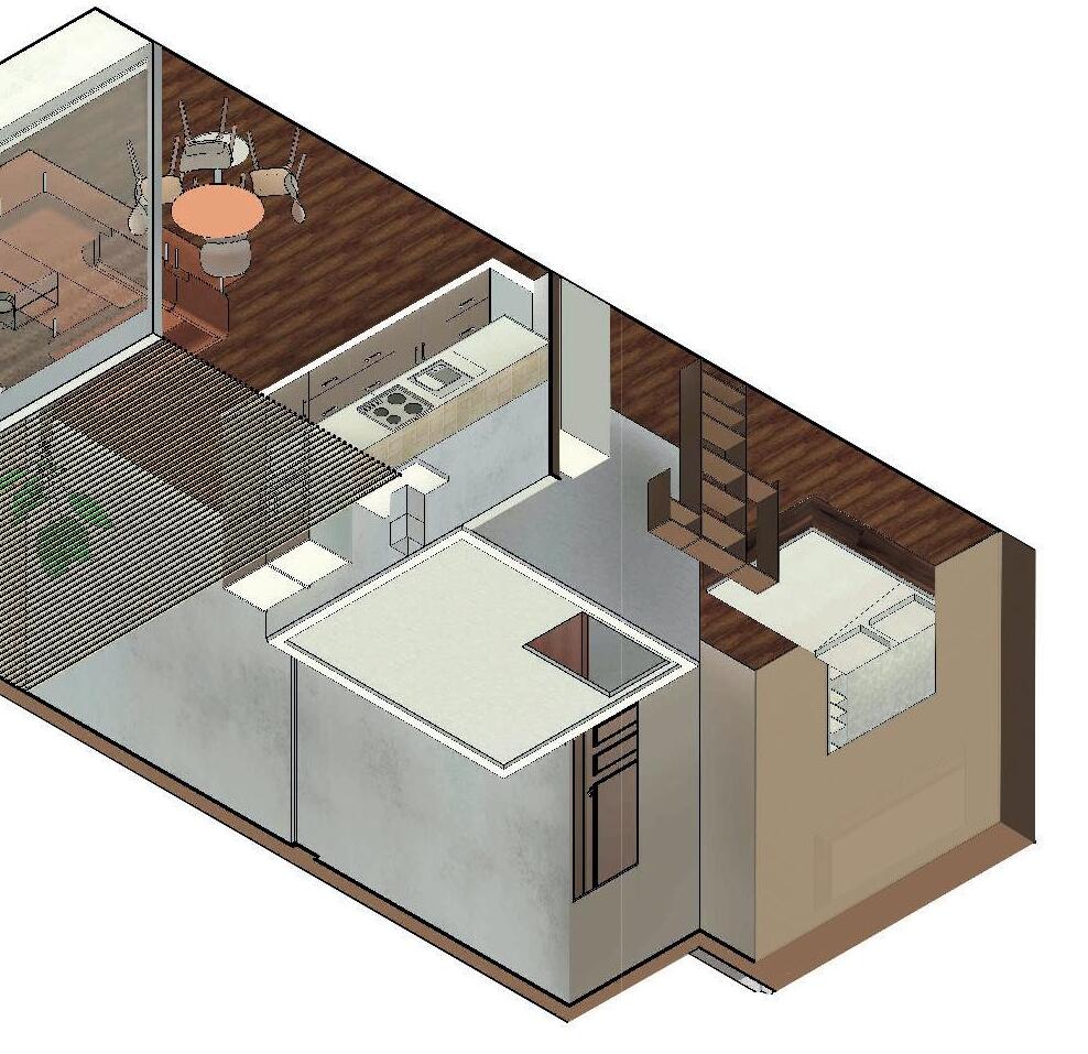 The motel is an individual unit that would be replicated in each of the units. It is a place where the artist can cook, work, lounge, and sleep. Each unit has its own bathroom. This process began by researching the history of Amboy, California and Roy’s. The concept of “Island in the Desert.” drove all the decisions made as a designer including the circulation, form, colors, and materials used Using organic and curvilinear geometry, an island in the middle of a sandy California desert that is an oasis for artists was created.