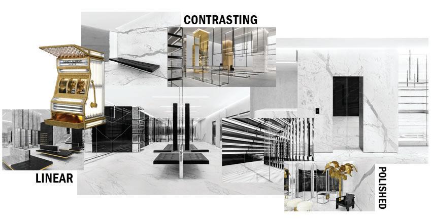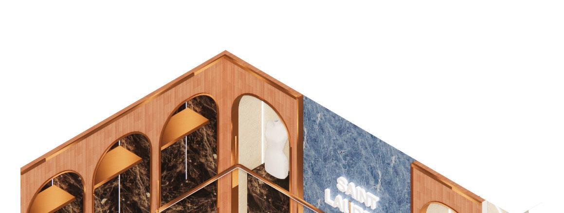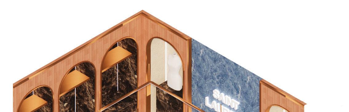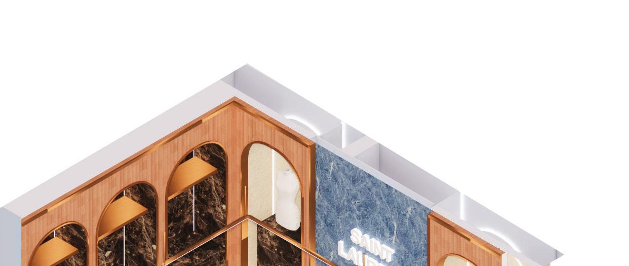 This project explores a shop-in-shop concept for Saint Laurent within La Rinascente at Via Del Tritone 61 - 00187 Roma. Designed as a trial for a new store aesthetic, the space balances YSL’s minimalist elegance with fresh elements that reflect the brand’s heritage. The design introduces a distinct identity tailored to the Italian luxury retail context. It embodies the intentional renewal of the cultural fundamentals of Yves Saint Laurent with a refined richness.