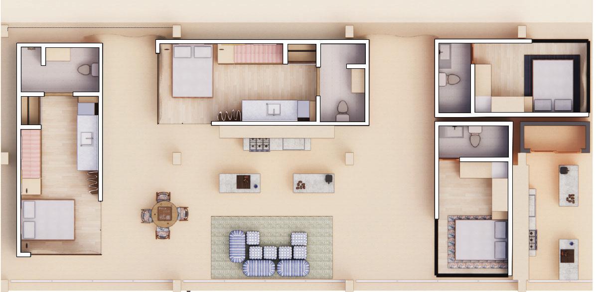 Individual units maintain autonomy while existing in a interconnected living environment, where quality of life is dependent on communal engagement.