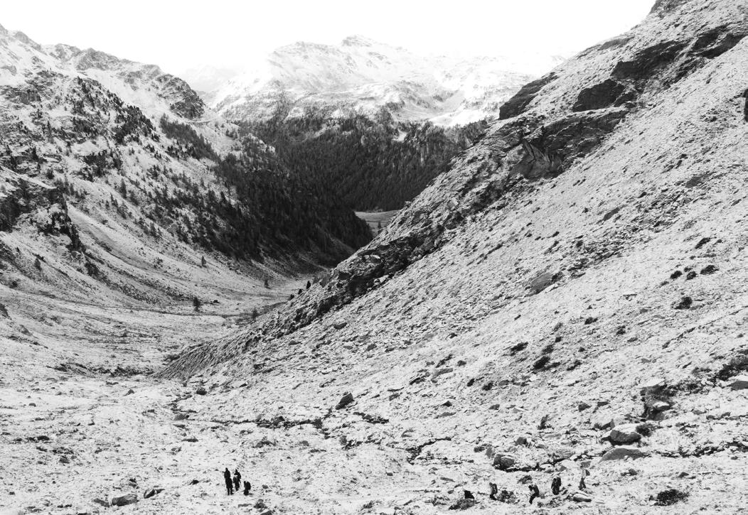 Bij mij rijst de vraag welke vorm een openluchtmuseum kan en mag aannemen binnen de uitdagende context van het berglandschap op 3000 meter hoogte. Het is een landschap waar ecologische urgenties van het hier en nu zich extremer en versneld manifesteren: een confronterend landschap; een te haastig smeltend, brekend en schuivend landschap. De bergen mogen rust uitstralen, maar op 3000 meter hoogte zijn ze onherbergzaam en bevreemdend gebied.