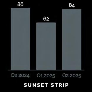 The data below illustrates nine micro markets surveyed in the Los Angeles area for Q2, the previous quarter, and the previous year.
