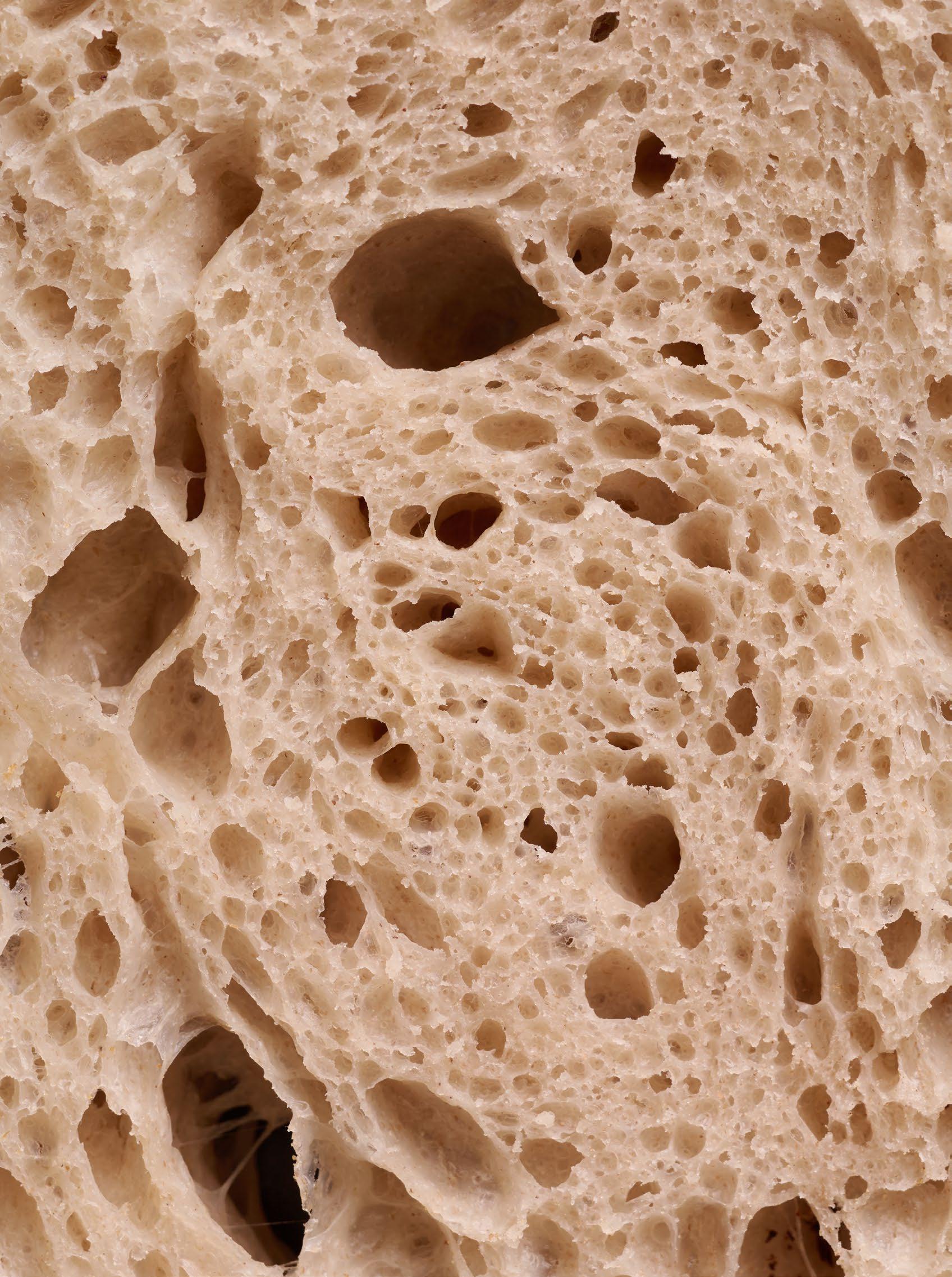Den Broten sieht man die Veränderung – zumindest von außen – nicht an. Sie zeigen sich völlig unbeeindruckt von ihren neuen Ruhezeiten. Sie scheinen auch die früher beigemengten Hefen nicht zu vermissen. Wahrscheinlich spüren sie, dass von Natur aus schon alles in ihnen steckt, was sie brauchen. Während äußerlich also alles gleich geblieben ist, schaut es von innen ein bisschen anders aus. Da sind durchaus Unterschiede erkennbar, zum Beispiel in der ungleichmäßigeren Bohrung des Teigs. Es könnte auch sein, dass einem die Schnittflächen saftiger vorkommen. Das ist wirklich so. Weil das Mehl nun mehr Zeit mit dem Wasser verbringt, kann es länger quellen und so mehr Feuchtigkeit binden. Das führt dazu, dass unsere Brote noch länger frisch bleiben. Für uns selbst spielt das allerdings keine Rolle. Wenn wir ein Brot anschneiden, bleibt keine Scheibe übrig. Wir denken bei dem, was wir tun, aber ja auch nicht an uns selbst, sondern ans große Ganze. Wobei das nichts mit tatsächlicher Größe zu tun hat, sondern damit, dass wir weiter in der Qualität wachsen möchten. Wir überlegen uns daher stets, wie wir es besonders und noch ein bisschen besser machen können. Die hefefreien Brote? Die sind das beste Beispiel dafür.