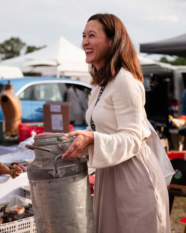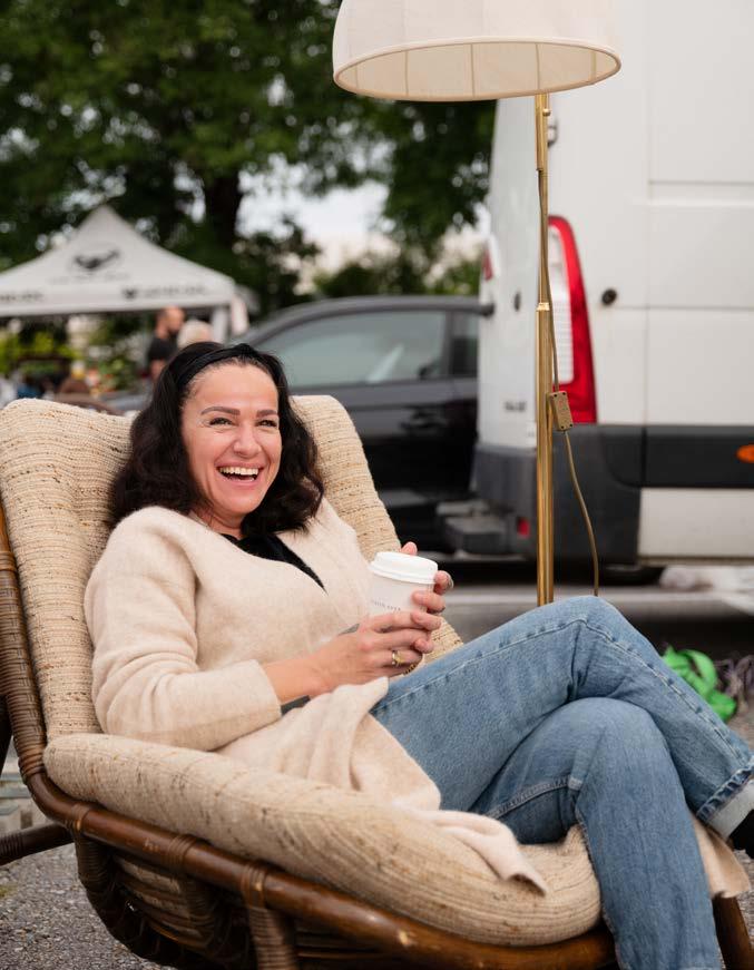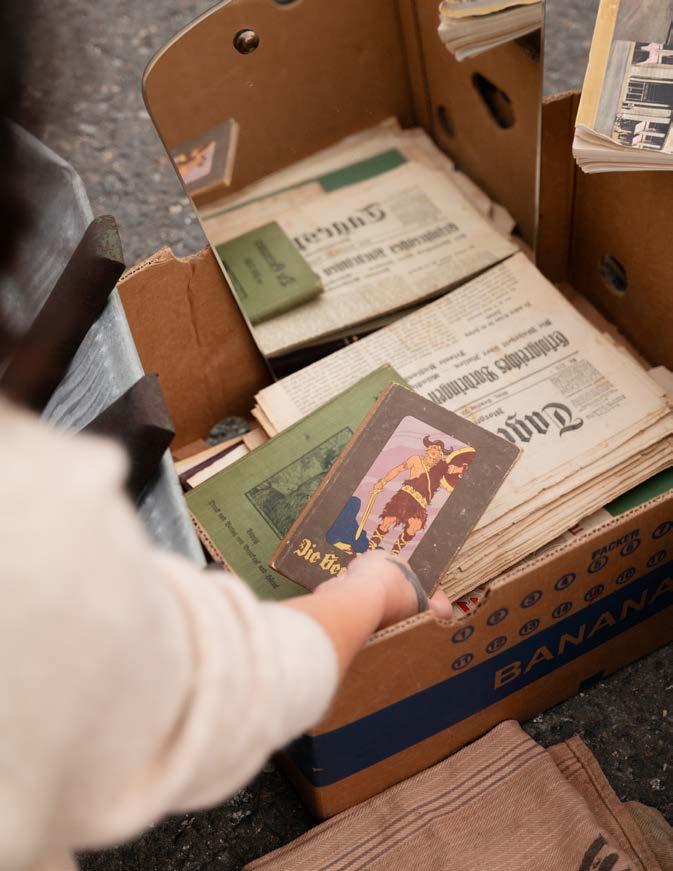 Für einen schnellen Coffee to go – oder besser: einen Coffee to „stöber“ – muss noch Zeit sein, auch wenn sich sein Duft schon mit dem Geruch von alten Büchern und VintageKleidern vermischt. Pünktlich zum Einlass stehen Bianca und Gudrun bereit, um sich mit vielen anderen NostalgieBegeisterten der Suche nach besonderen Dingen und Relikten aus der Vergangenheit hinzugeben. Unter freiem Himmel werden hier, wo sonst eigentlich Hunderte Autos parken, Antiquitäten, Raritäten und allerlei Kunst und Krempel von erfahrenen Händler:innen feilgeboten. Konkretes Ziel für den Besuch gibt es keines. Ist auch besser so. Denn Flohmärkte sind ja auch immer ein bisschen Glücksspiel. Und zur richtigen Zeit am richtigen Ort wartet vielleicht auch genau das, was für eine:n bestimmt ist.