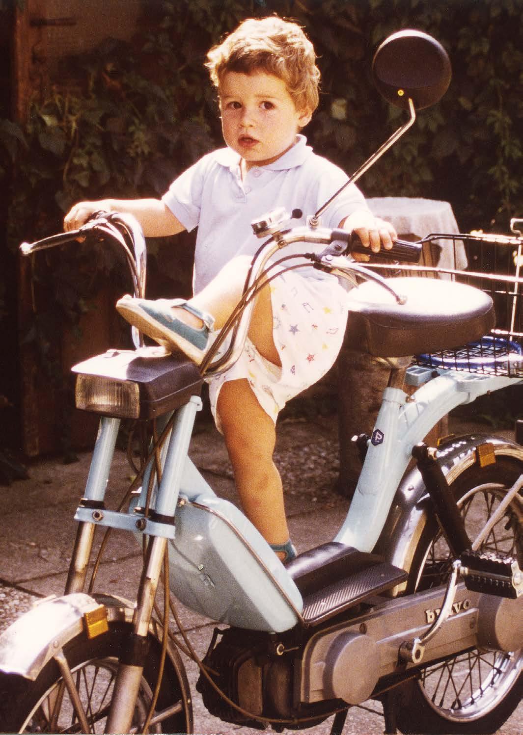 führer im Familienbetrieb: „Film einlegen, Karten abreißen, Film starten und dann nach Möglichkeit sitzen bleiben und zuschauen“, lautete die Devise. Neben dem Kino war sein Lieblingsort der große Garten hinter seinem Familienhaus in Graz. Der war nämlich Treffpunkt für sämtliche Kinder aus der Nachbarschaft. Für die Beschallung war meist sein Vater zuständig. „Der ist immer schon ein alter Rocker gewesen, der am Sonntag in der Früh schon seine Boxen ausprobiert hat“, lacht Christian und ergänzt: „Die Nirvana-CDs habe ich alle von ihm gefladert“. Mit der alten Puch vom Onkel war Christian in seiner Jugend unterwegs. Wem die Puch Maxi auf dem Foto gehört, das in den frühen Neunzigerjahren aufgenommen wurde, weiß er nicht mehr. Was er aber weiß, ist, dass er das motorisierte Fahren bald gegen das Fahrrad eintauschte. Und das ist neben dem Basketballspielen auch heute noch eine seiner großen Leidenschaften.