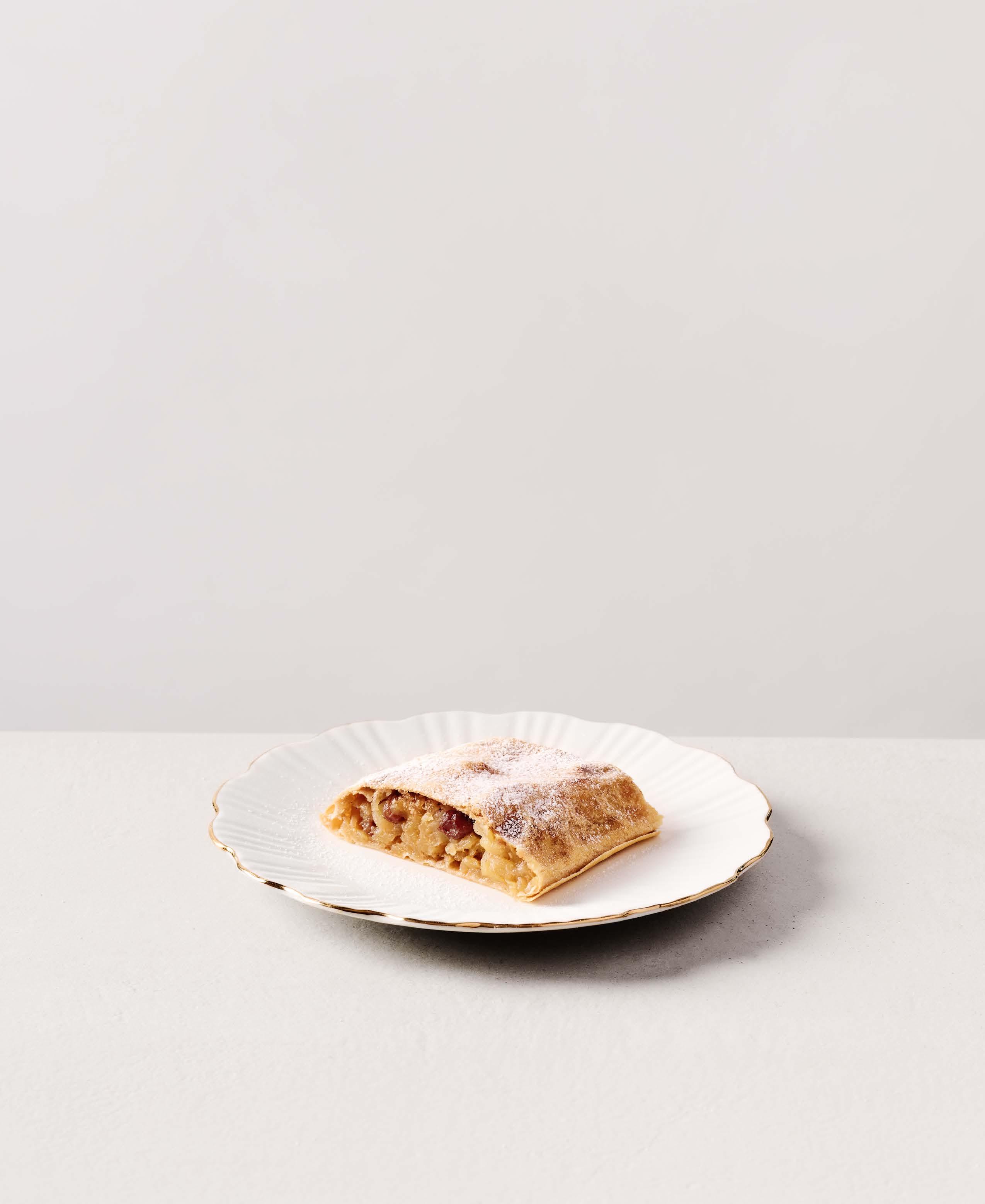Herbstzeit ist Apfelzeit. Und weil’s schon etwas kälter wird, zieht sich der Apfel warm an: Zusammen mit Zimt, Zucker und Rosinen hüllt er sich in zarten Strudelteig, der bei uns jeden Tag von Hand gezogen wird. Klassisch aus Mehl, Wasser, Öl und etwas Salz gemacht, schmeckt’s wie bei Oma.