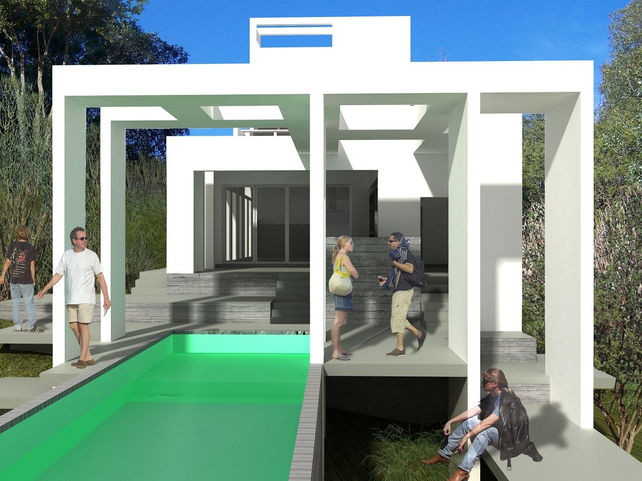 Un proyecto de Arquitectura se concibe por medio del dialogo y el encuentro entre Comitente (Cliente) y Arquitecto. Considero que el rol de un Arquitecto es entender cuáles son los deseos vitales de su Comitente, convirtiendo así a la interacción del Devenir Procesual en una experiencia única. En esta vivienda los espacios se relacionan con las cuatro estaciones del año: EL SUR: batería de servicios que hacen de barrera del viento y el frio; EL NORTE: se abre al sol invernal y sin sol directo en la estación estival. EL OESTE: sombras graduales, con vistas hacia las montañas. EL ESTE: relaciona la vivienda con el espacio público del lugar. Existe además consonancia con su terreno y entorno próximo: Está pensado en relación al paisaje cercano y lejano: vistas y desniveles.