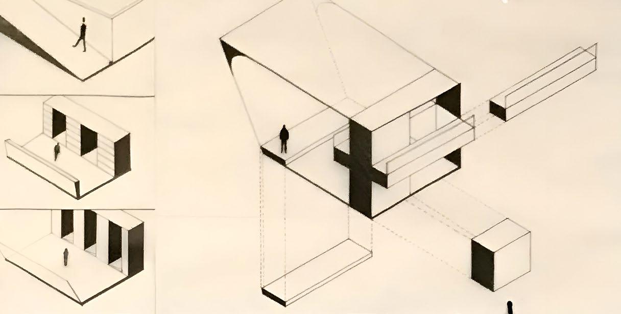 A partir de los conceptos del molde del espacio, se elaboran esquemas, dibujos, planos y maquetas que permiten visualizar la composición espacial mediante herramientas como los llenos y vacíos.