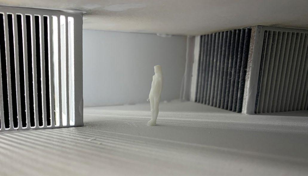 Plegado, En esta maqueta la operación formal mostraba como un elemento se dobla sobre si mismo.