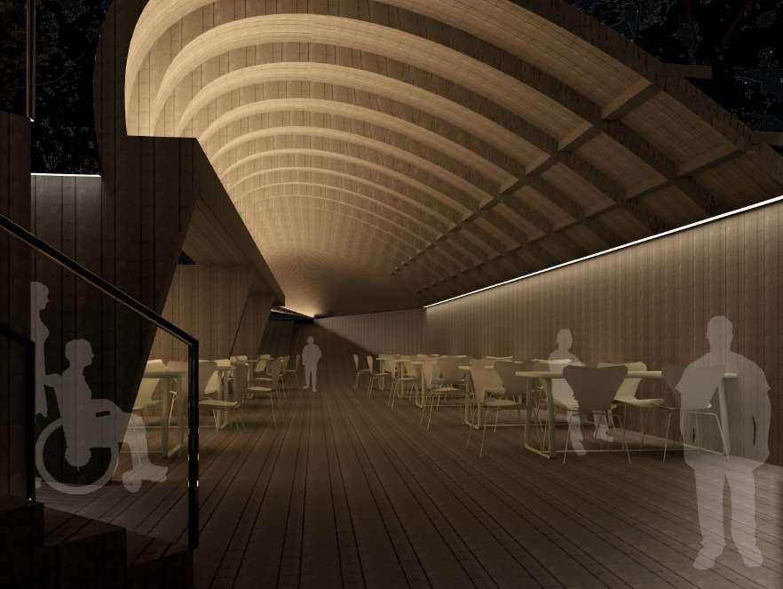 ón de translucides desde dentro por lo que casi todas las aulas y espacios cuentan con amplios vanos para poder tener una imagen enmarcada del paisaje desde dentro.