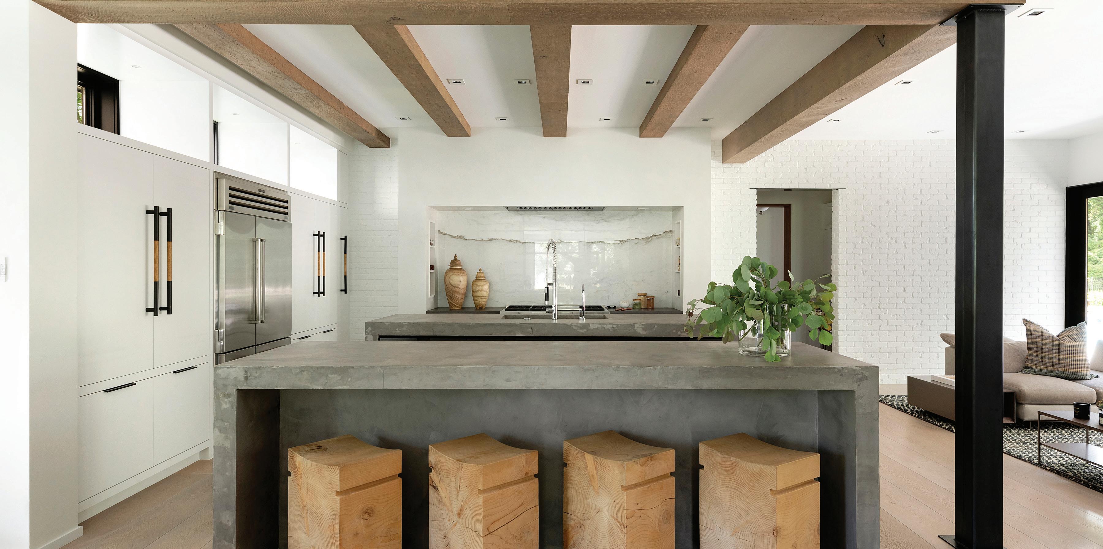 “We wanted to emphasize the visual interest through textures, so juxtaposing the natural palette and clean lines with a variety of concrete, brick, blackened ash, and steel gave the home an unexpected edge.”