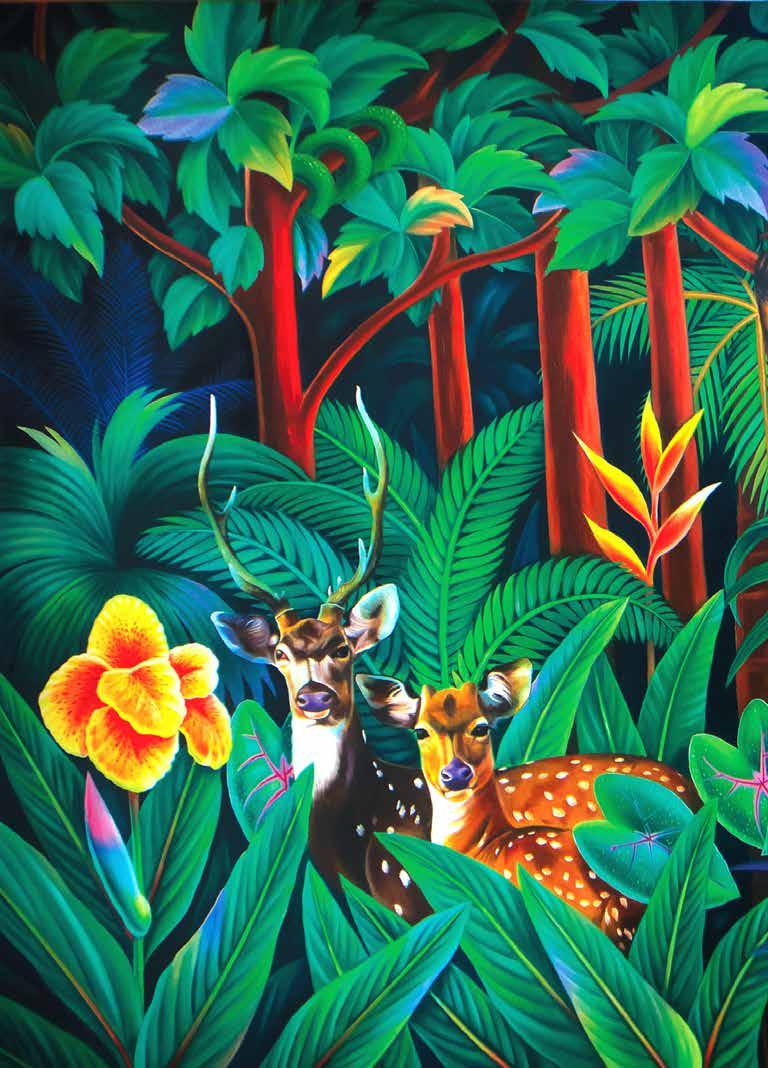 Lush greenery, little butterflies dancing on greenishyellow leaves, bees sucking on a blooming lotus, the haunting quiescence of an ancestral home ... artist Muraly Nagapuzha's paintings seek to touch and awaken long forgotten childhood memories and tempt you with the bewitching beauty of nature.