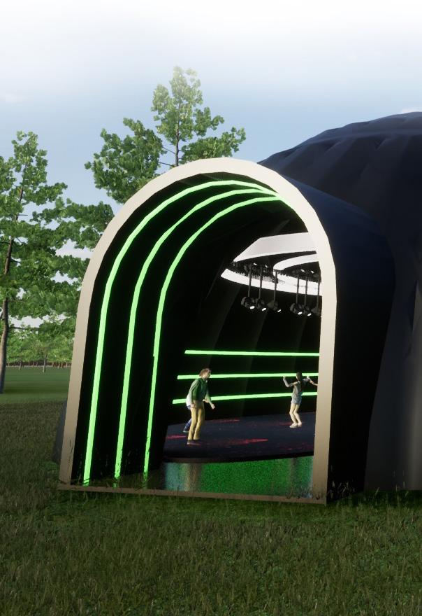Diseño de un espacio promocional para un festival de música, con el objetivo de generar una experiencia sensorial que conecte emocionalmente a los asistentes con la marca Spotify.