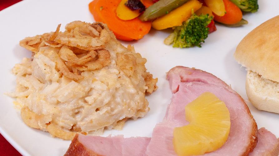 4. Combine the soup, sour cream and seasonings; add to the potato mixture and mix.