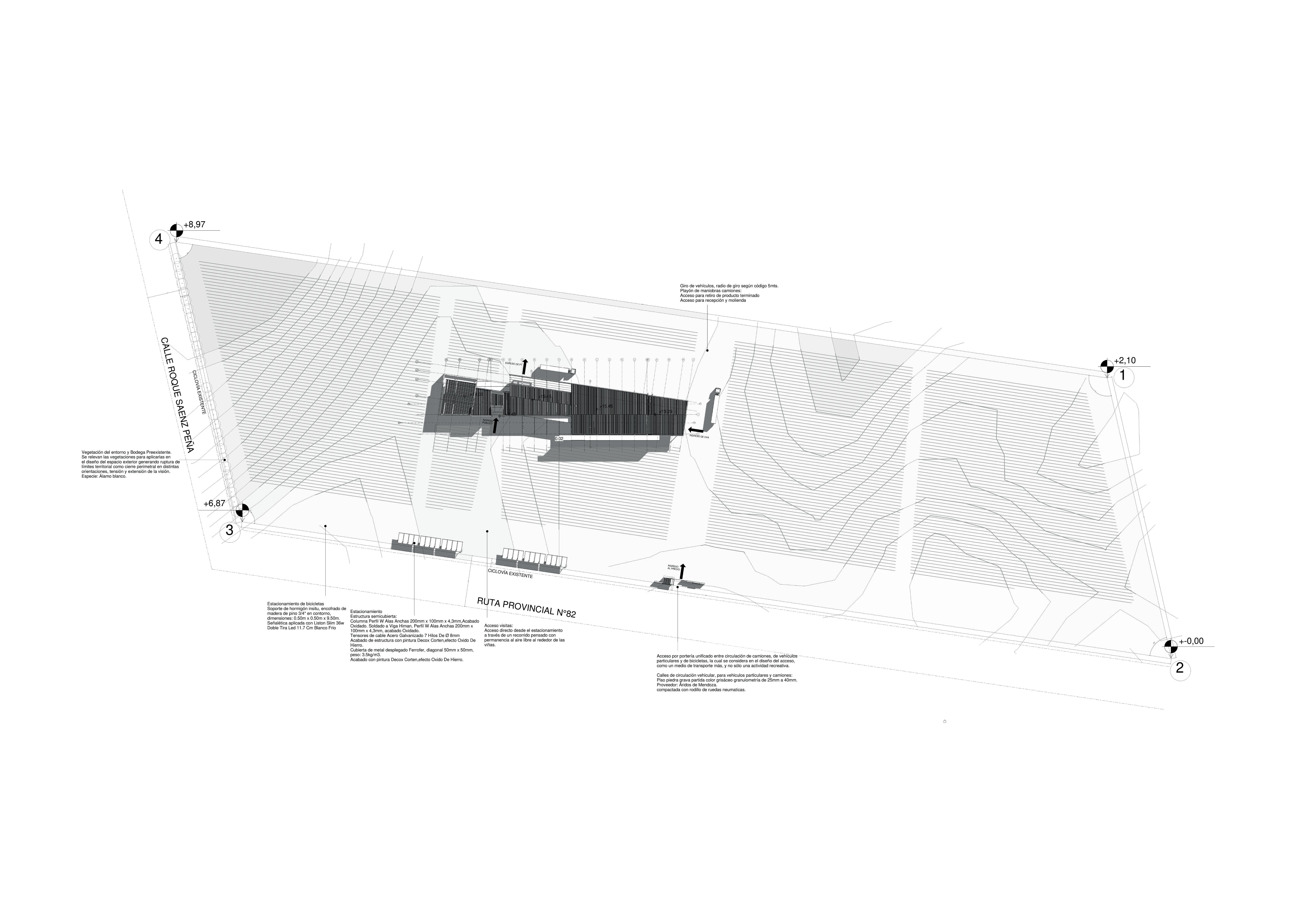 VEGETACIÓN DETALLE CONSTRUCCIÓN PASARELA DE INGRESO VEGETACIÓN EXISTENTE VEGETACIÓN NUEVA ÁLAMO POPULUS ALBA 1° Magnitud h= 30m d= 3m Caducifolio CORTADERA SEOLLANA 3° Magnitud h= 2-3m d= 1m Pasto rizomatoso Cantidad de ejemplares: 124 Farola De Hormigón Led De Pie Diseño Block Castelnuovo GU10 Alto: 45cm Ancho: 35cm Profundidad: 12cm Material: Cemento Color: Cemento Lámpara: LED 2 x GU10 Spot Embutir Movil Pvc Negro Movil Con Dicroica Led 7w Ancho: 10,5cm Profundidad: 8cm Material: PVC Color: negro Lámpara: LED 7w P1 P2 P3 IL01 VE01 VN01 IL02 MALBEC VITTIS VINIFERA MALBEC 3° Magnitud L= 30m Trepadora VE02 COIRÓN FESTUCA 3° Magnitud h= 1m d= 1m Pasto rizomatoso Cantidad de ejemplares: 142 VN04 JARILLA LARREA D. 3° Magnitud h= 1-3m d= 1m Arb. ramoso Cantidad de ejemplares: 132 VN02 PUNA STIPA CAUDATA 3° Magnitud h= 1-2m d= 1m Herbácea Cantidad de ejemplares: 98 VN03 TOMILLO THYMUS 3° Magnitud h= 1m d= 1-2m Arb. ramoso Cantidad de ejemplares: 124 VN05 FLECHILLA SETIGERA 3° Magnitud h= 1m d= 40cm Hierba Cantidad de ejemplares: 250 VN05 Piso industral de H armado H21. Espesor 100 mm juntas aserradasen paños de 20m2 profundidad mínima de 1/5 del espesor, Terminación con adición de fibra y terminación cuarsítica superficial. Malla electrosoldada del 6. Canto de piso perfil UPN 100 Acabado Activador de óxido/Acero Corten NAZZA Aplicar mediante pincel, esponja o simila una mano de oxidante y dejar actuar durante media hora aproximada mente. Seguidamente aplicar otra mano del producto dejando actuar hasta conseguir el efecto deseado. Viga de hormigón armado h=50cm hormigón visto con encofrado de fenólicos con una cara epoxipada Colchon de ripio y material estabilizado granulometría de 25mm a 40mm Terreno natural